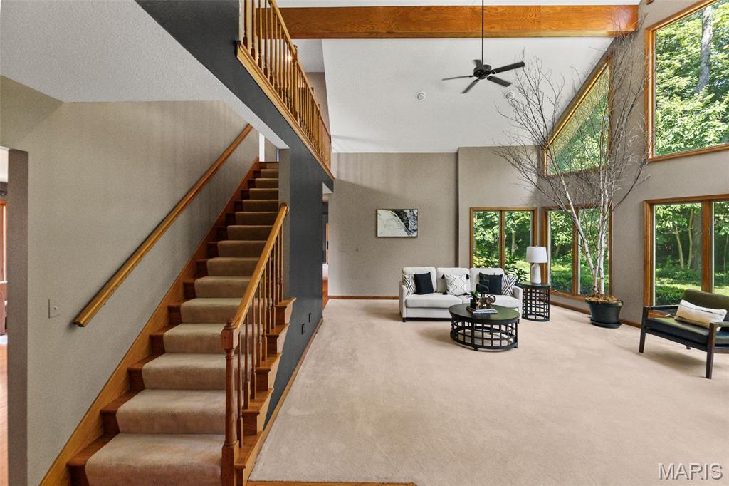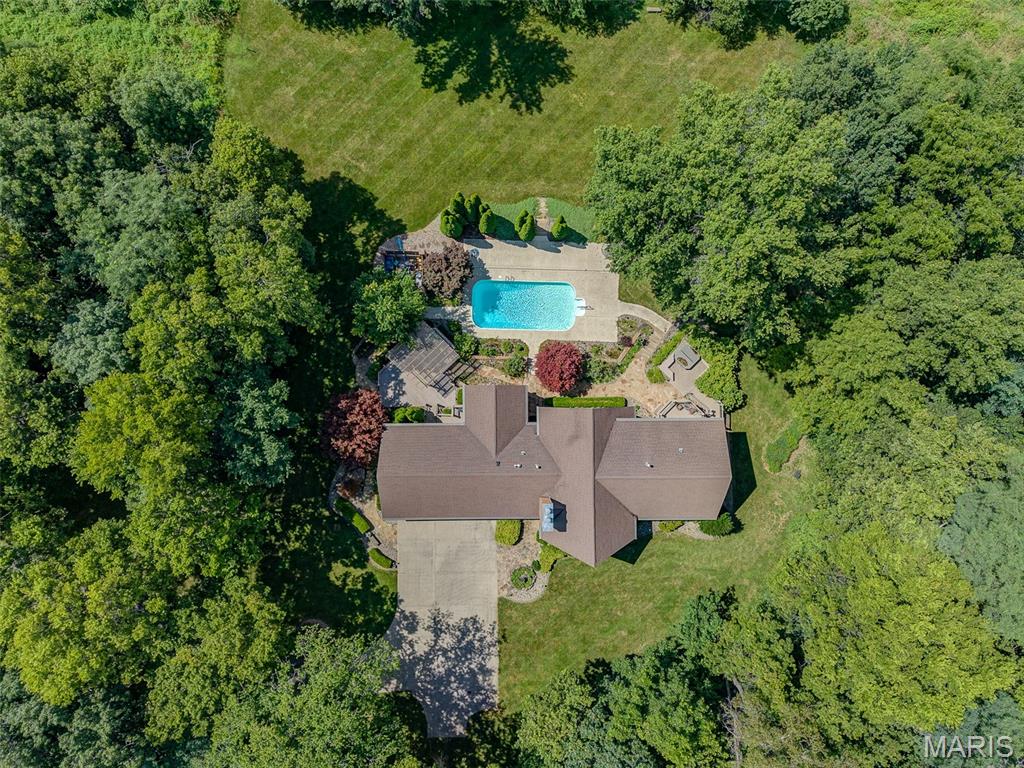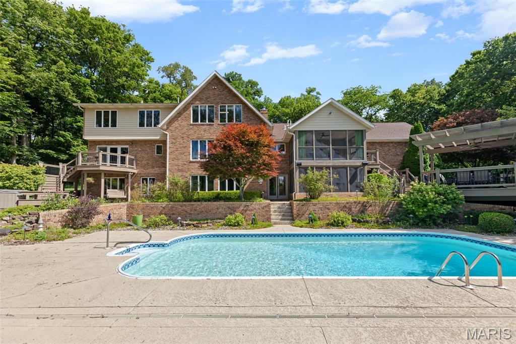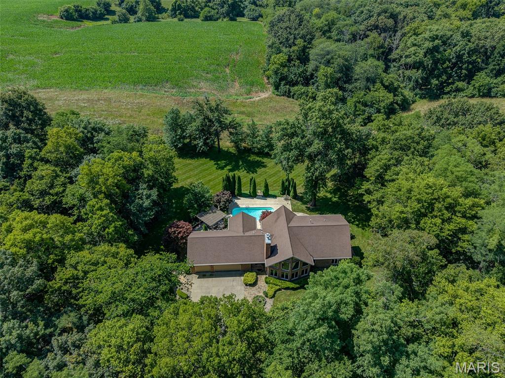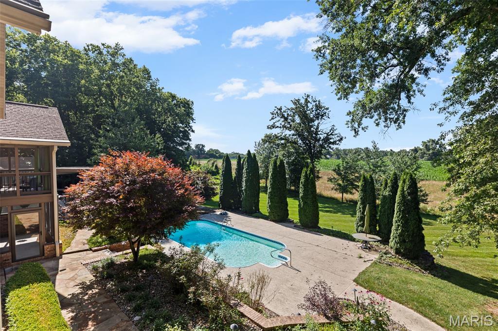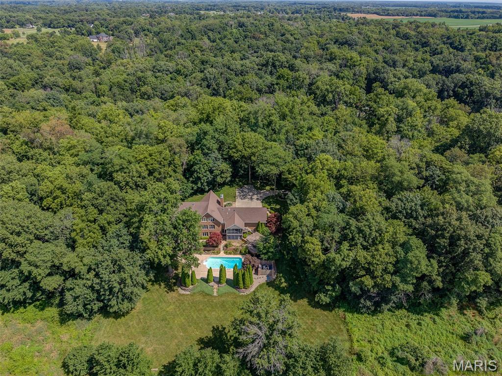 Enjoy privacy with this home sitting on 5 acres and an additional 5 acres with an abundance of wildlife. Private but minutes from downtown Edwardsville. Enter into the great room with plenty of natural light due to the 2 story high windows. 5 bedrooms, 4 bath home. 5th bedroom is currently set up as the mirrored exercise room. Work from home in the upper large loft/office area with plenty of windows. Home boasts 2 screened in porches and a pergola overlooking the heated in-ground pool. This custom built home has a finished basement with bedroom, rec room, family room, and more. Pool table in the rec room will stay. This home has plenty of room inside and out, for entertaining. Includes 2nd parcel 10-1-16-00-000-008.