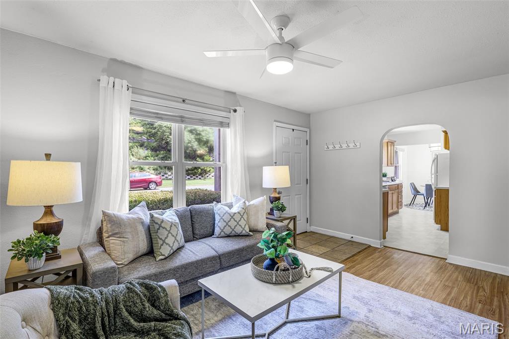 Welcome Home to Your Storybook Cottage in Edwardsville! Discover the perfect blend of vintage charm and everyday comfort in this delightful home tucked away on a quiet street just a short walk from the heart of downtown Edwardsville & MCT trails. From the moment you arrive, you’ll be enchanted by the storybook feel — a quaint garden gate welcomes you from the front yard & leads you to a peaceful, terraced backyard lined with mature trees. Imagine morning coffee on your private patio, birdsong overhead & evenings spent under the stars in your fenced retreat. Inside, sunlight pours into the inviting living room, creating a warm, happy space to relax or gather w/ friends. An arched doorway adds a touch of vintage character, connecting the living room to the cozy eat-in kitchen. Here, you’ll find a practical pantry & easy access to the patio & walkout lower level — perfect for weekend brunches or bringing in fresh herbs from your garden. With 2 comfortable bedrooms, a full bath & a convenient hall closet, the layout is simple yet functional — ideal for a first home, downsizing, or anyone craving a slower pace of life. A separate one-car garage offers extra storage & convenience. Life here is all about savoring the small moments: peaceful walks or bike rides on the MCT Trail, weekend strolls to local shops, Goshen Farmer’s Market & cafés downtown & coming home to your own quiet retreat at the end of each day.