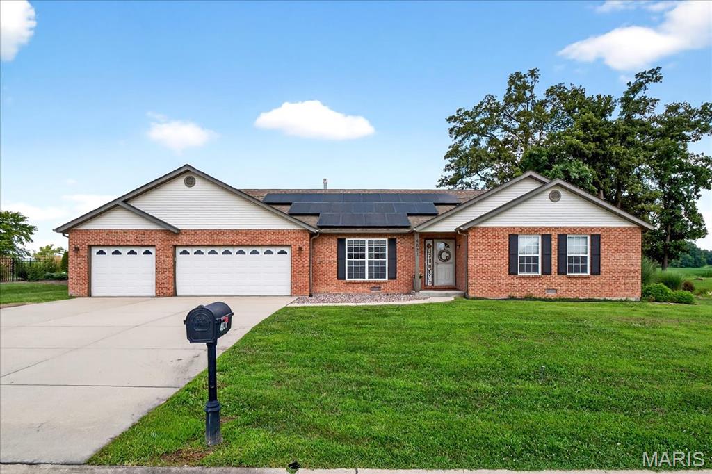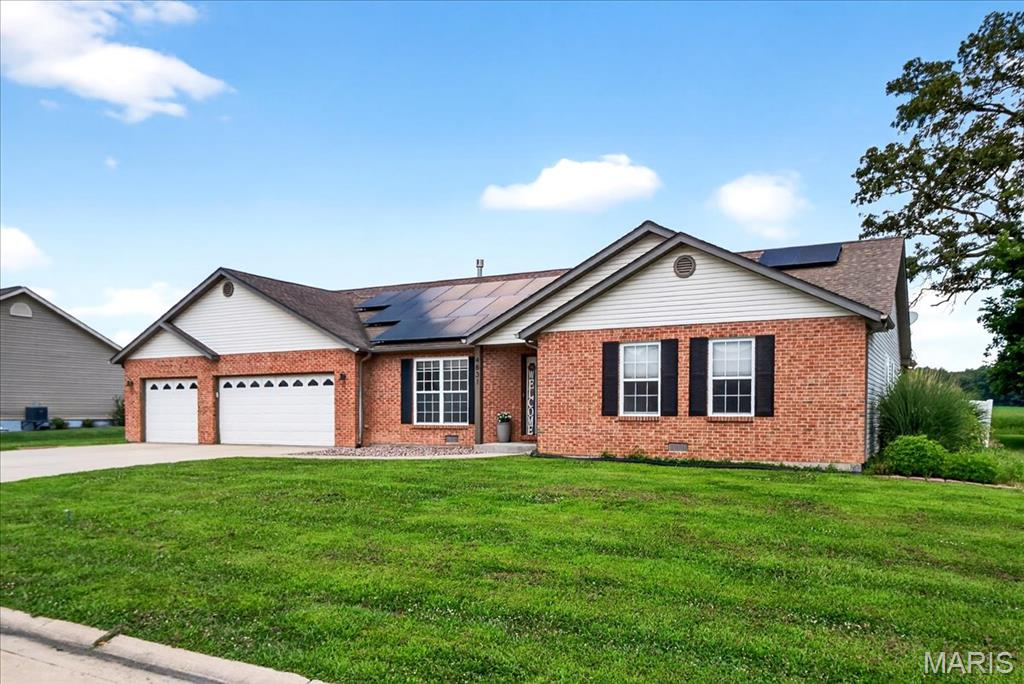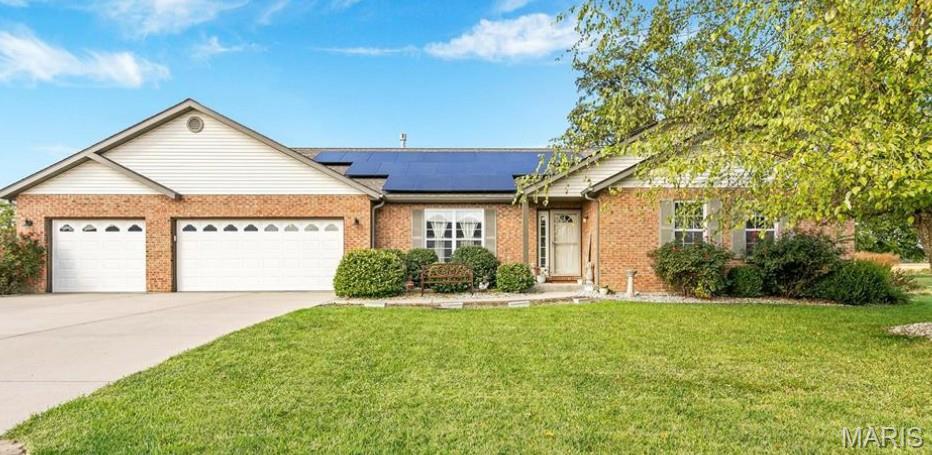 Get ready to fall in love with this 4-bed, 2-bath ranch in the popular Oak Valley Subdivision on Waterloo’s south end! Sitting on just under a half-acre, this backyard is your private oasis—complete with an in-ground pool, pergola, and vinyl privacy fence. Inside, the open floor plan features a massive living room perfect for gatherings, and a kitchen with like-new appliances (less than a year old!). The oversized 3-car garage offers tons of storage plus attic space. No basement? No problem—there’s storage galore throughout, including walk-in closets in every corner. The spacious primary suite is a true retreat with dual walk-in closets and a dreamy soaking tub. The other bedrooms are just as roomy! Bonus features include owned 7.5 kW rooftop solar panels and a brand-new pool liner and pump (installed this summer!). Don’t miss this move-in ready gem! Professional photos coming 07/26. (Sale of this home is contingent upon sellers finding suitable housing.)
