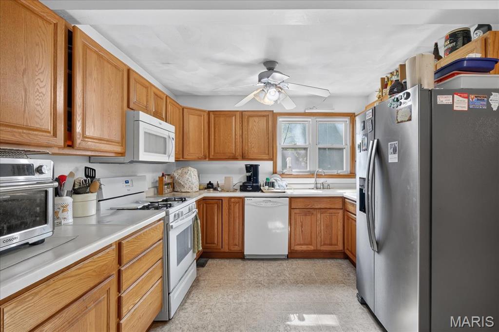 This charming 2-bedroom, 2-bathroom home offers loads of potential and room to grow! In 2002, the kitchen was expanded to create a more spacious and functional eat-in kitchen and dining area, along with the addition of a second full bathroom. The primary suite is just off the kitchen, with the second bedroom nearby. Enjoy cozy nights in the large living room, perfect for relaxing. While the home needs a little TLC, a new septic system was installed in 2022—an important update already complete! Outside, you’ll love the large, private yard, detached garage, and extra storage space. With a little love, this home could truly shine and build equity fast! This property is being sold as-is.