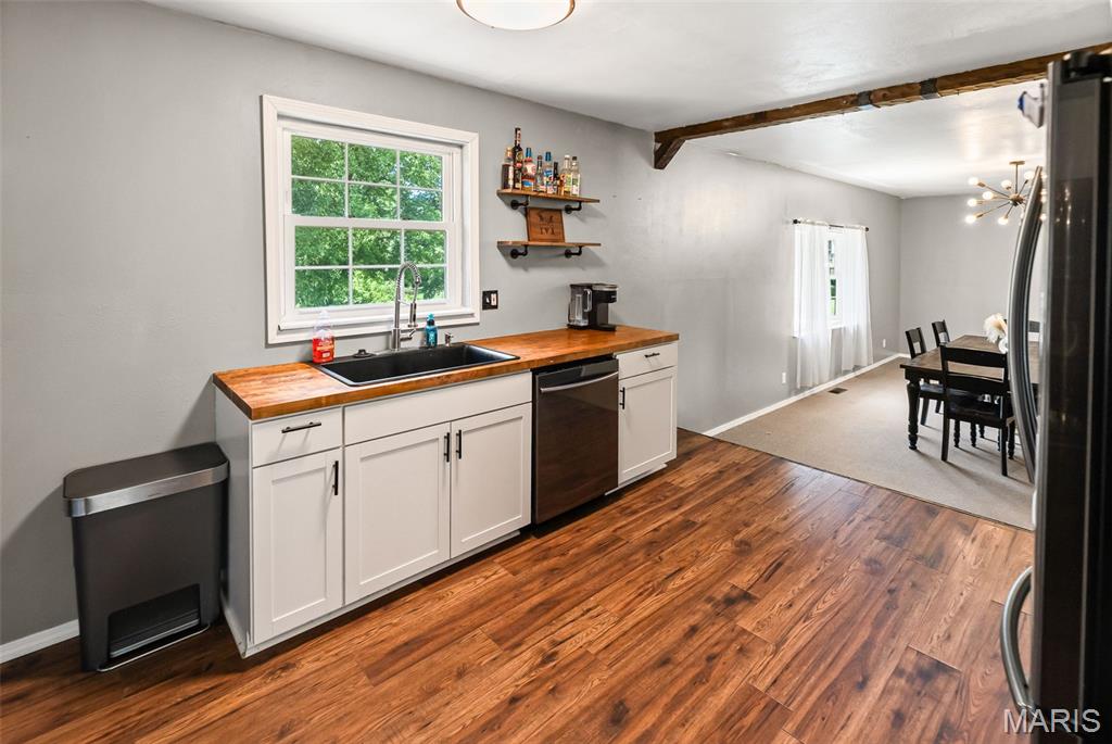 You’ll love the main floor bedrooms, perfect for easy, single-level living. The home features a large dining room that easily fits a full-sized table—ideal for family dinners or entertaining guests. Both bathrooms have been recently updated, offering a clean, modern look.
