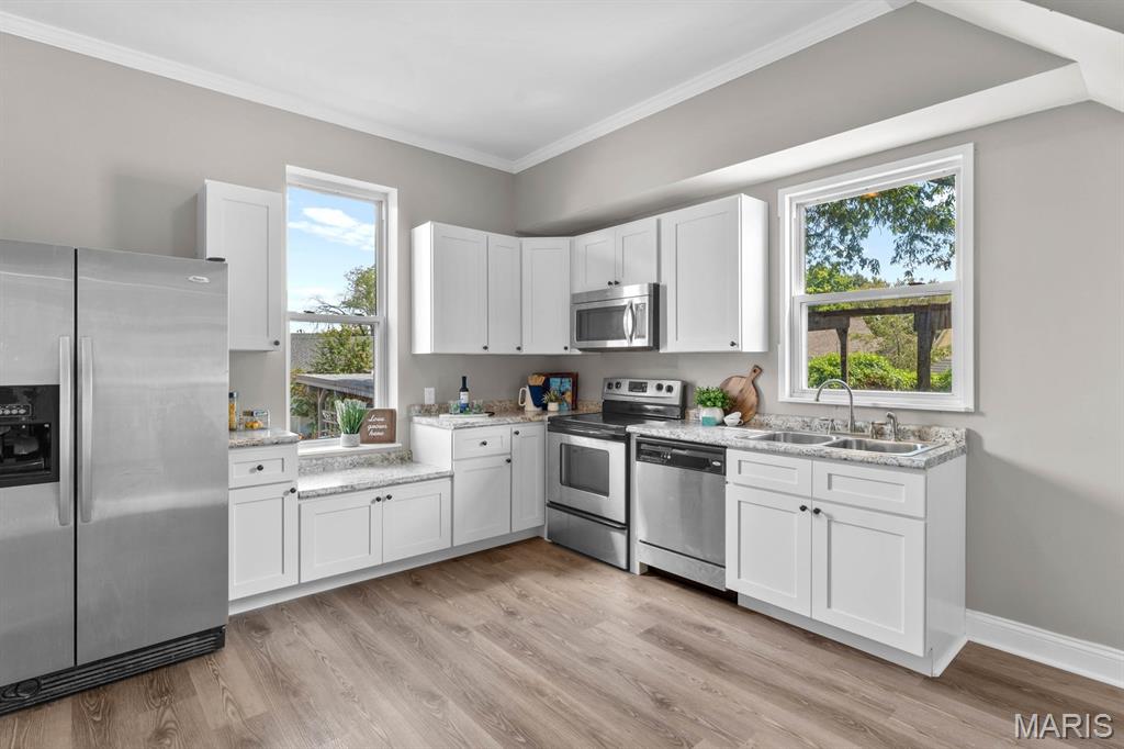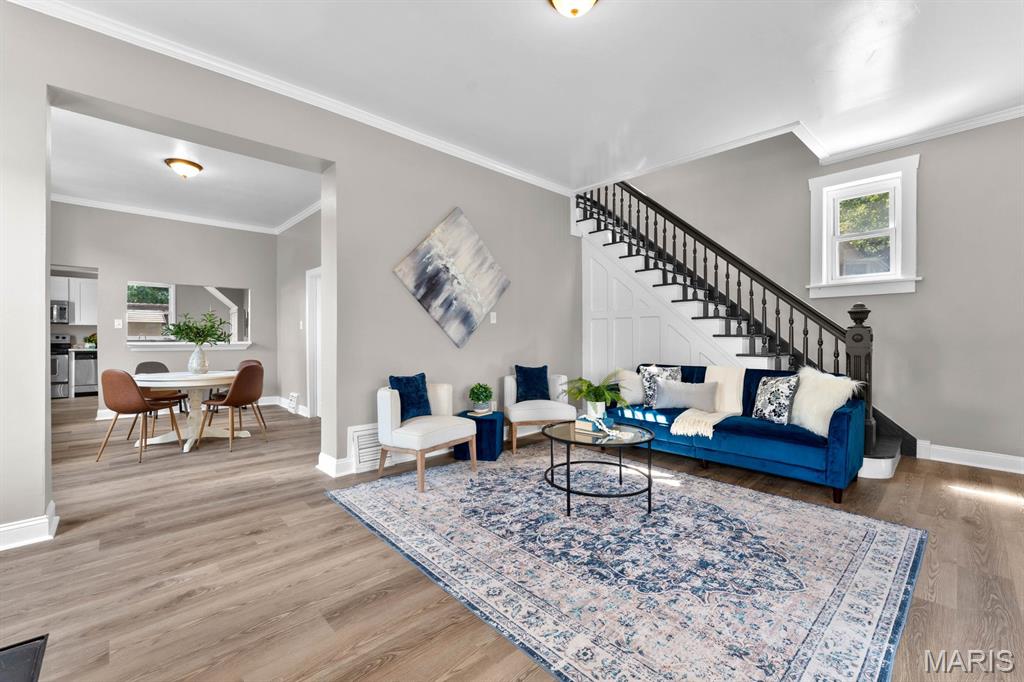 Charming 3-bedroom, 1-bath brick bungalow in the heart of Belleville! This move-in ready home offers fresh paint, new luxury vinyl plank flooring throughout, and major upgrades including a new furnace, AC and water heater in 2025. Inside you’ll find tall ceilings, a large living room, bright front sitting room, spacious dining area and generous kitchen with new cabinets and countertops. Stainless appliances. Main-level bedroom and laundry plus two large bedrooms upstairs. A beautiful staircase, nice front porch and convenient carport add to the appeal. All steps away from all downtown Belleville has to offer! Home will pass occupancy.