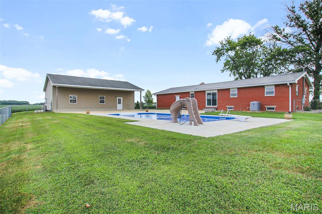 Outside, enjoy your own back yard retreat with a beautifully maintained inground pool and 10×30 covered patio —perfect for summer gatherings and quiet relaxation.