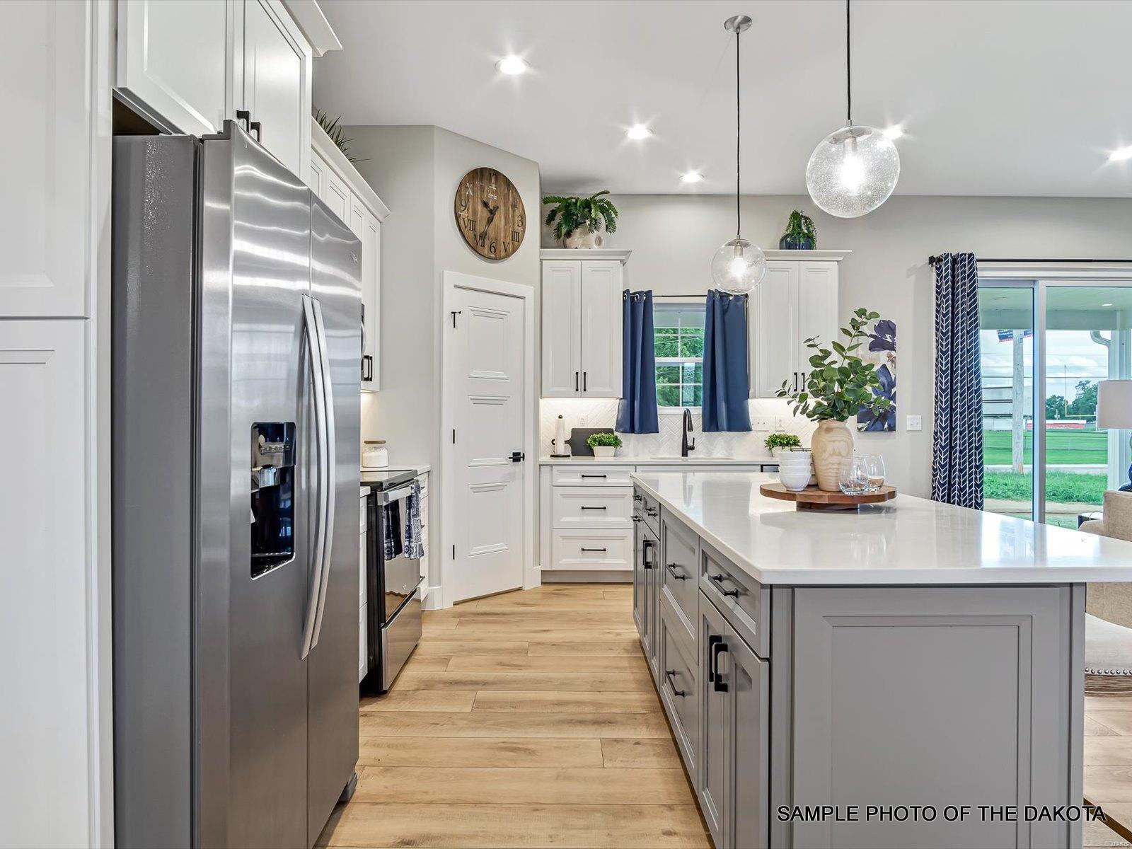 The Dakota floor plan is one of Quantum Homes Inc. Newest Floor Plans. This contemporary ranch is a split bedroom plan that has 3 bedrooms and a great room featuring the living room with gas fireplace, patio doors to patio, kitchen and breakfast room. There is a formal dining room which could be made into a 4th bedroom or den, custom kitchen with stainless steel appliances, pantry, large island, covered front porch. The master bedroom features a master bath with tub and separate shower, his and hers vanities, water closet and walk in closet. This plan can be customized to fit all your needs. Call today for your personal home building consultation. PHOTOS AND VIRTUAL TOURS ARE SAMPLE PHOTOS ONLY. This home is not built but could be built in 5-6 months. Agent Related to seller. Price reflects standard features, daylight wall in basement and 12×12 deck.