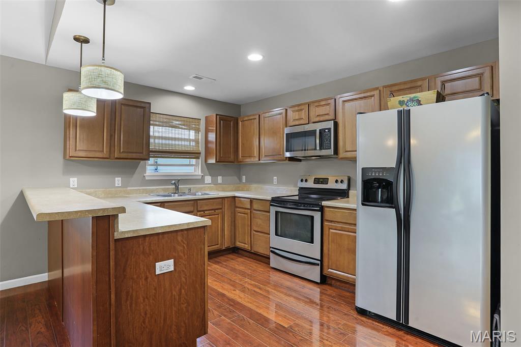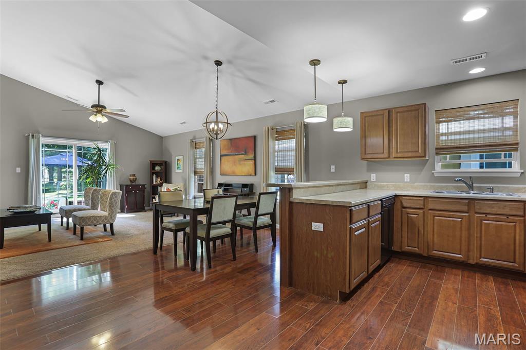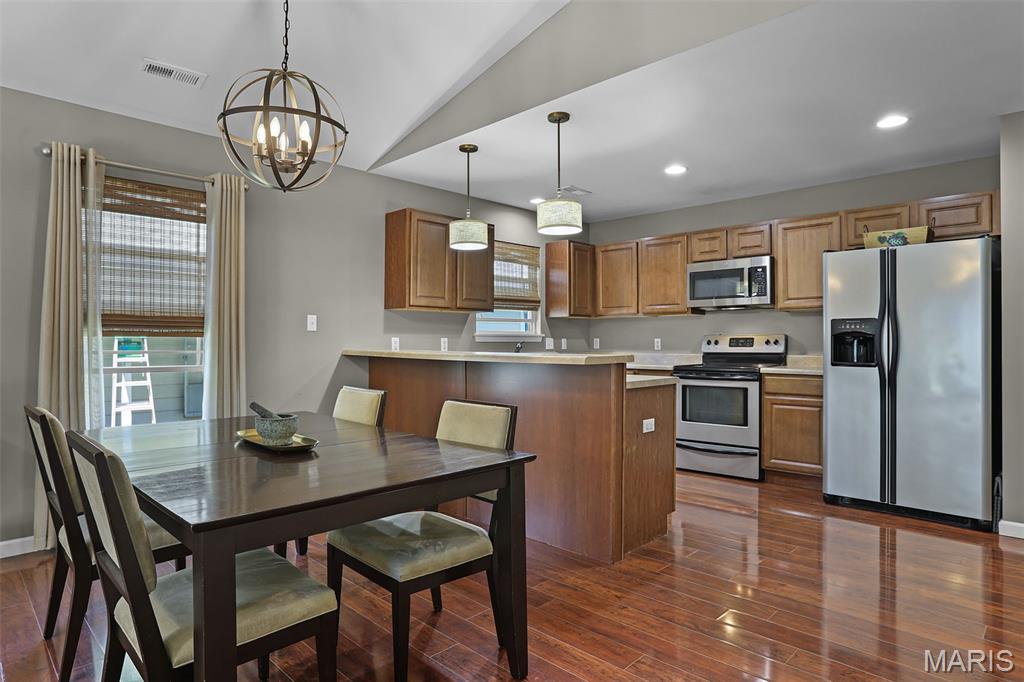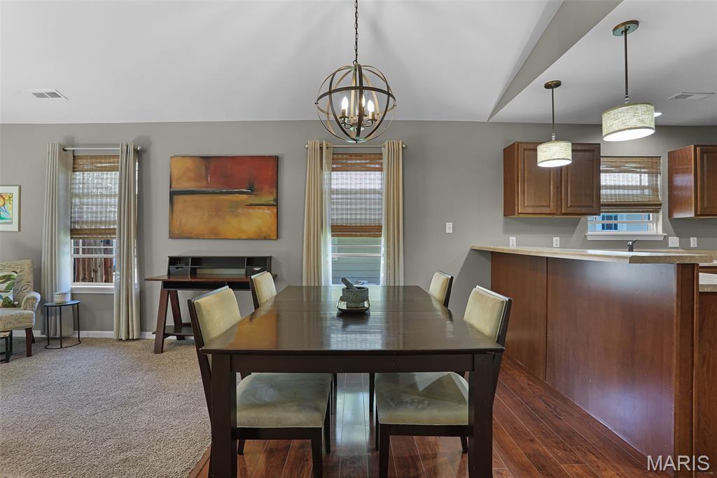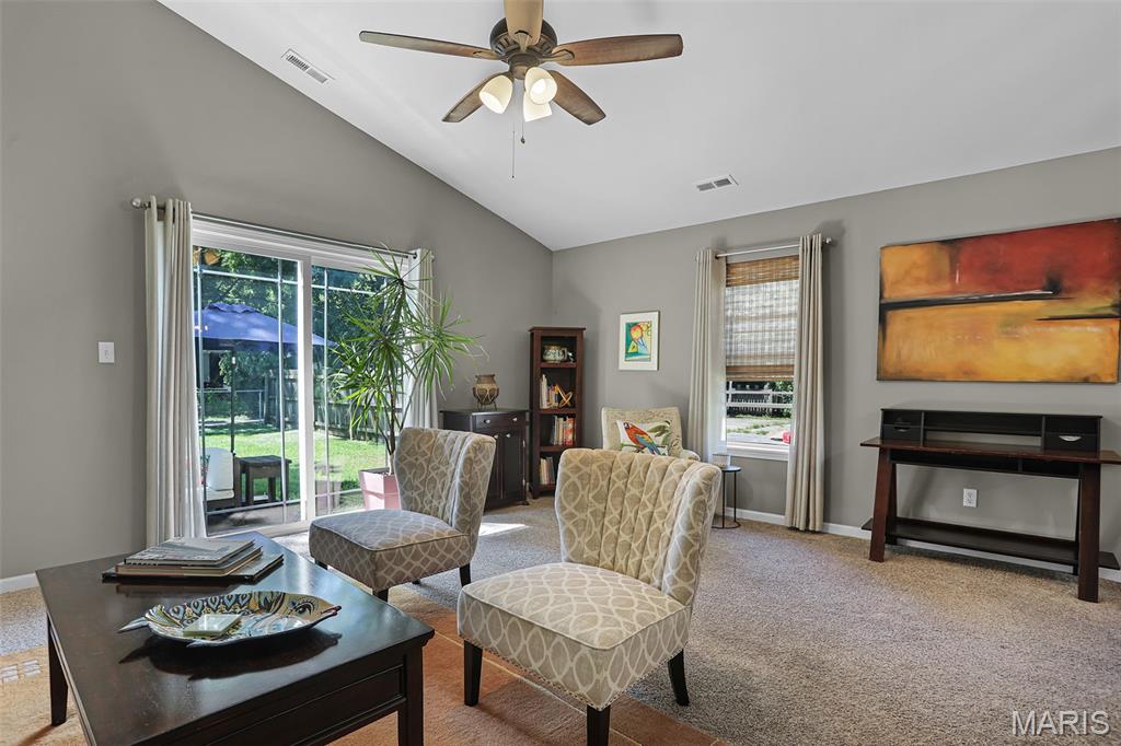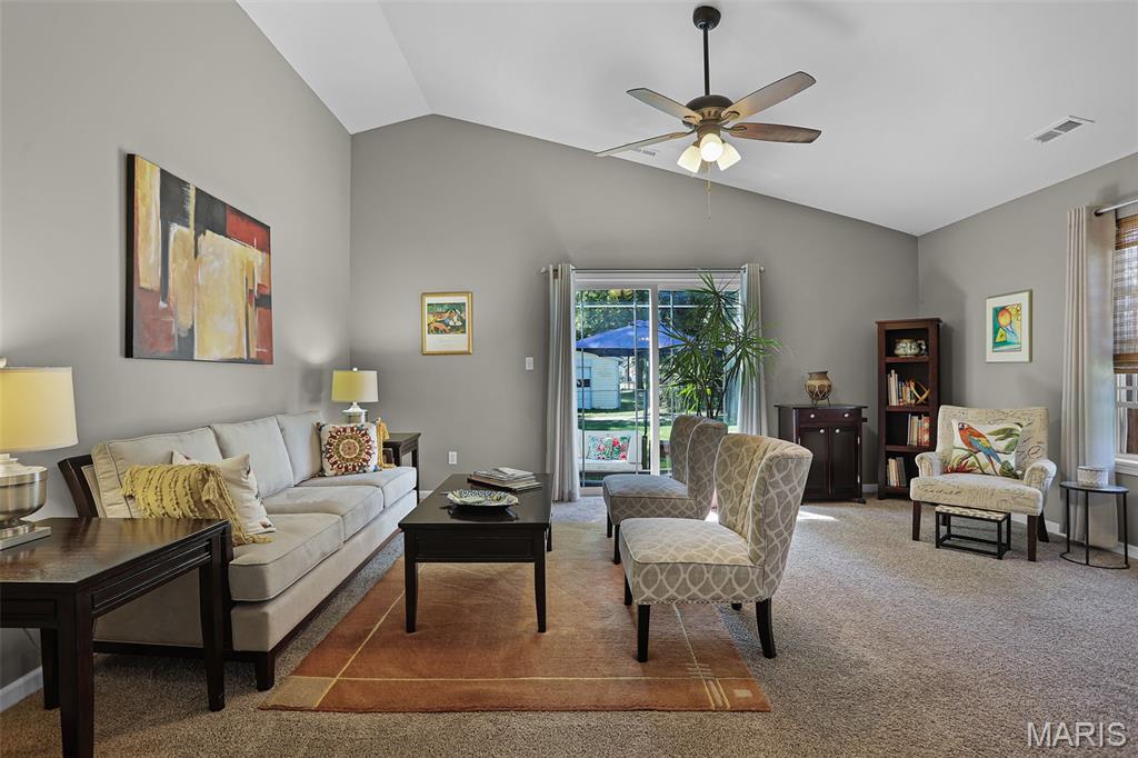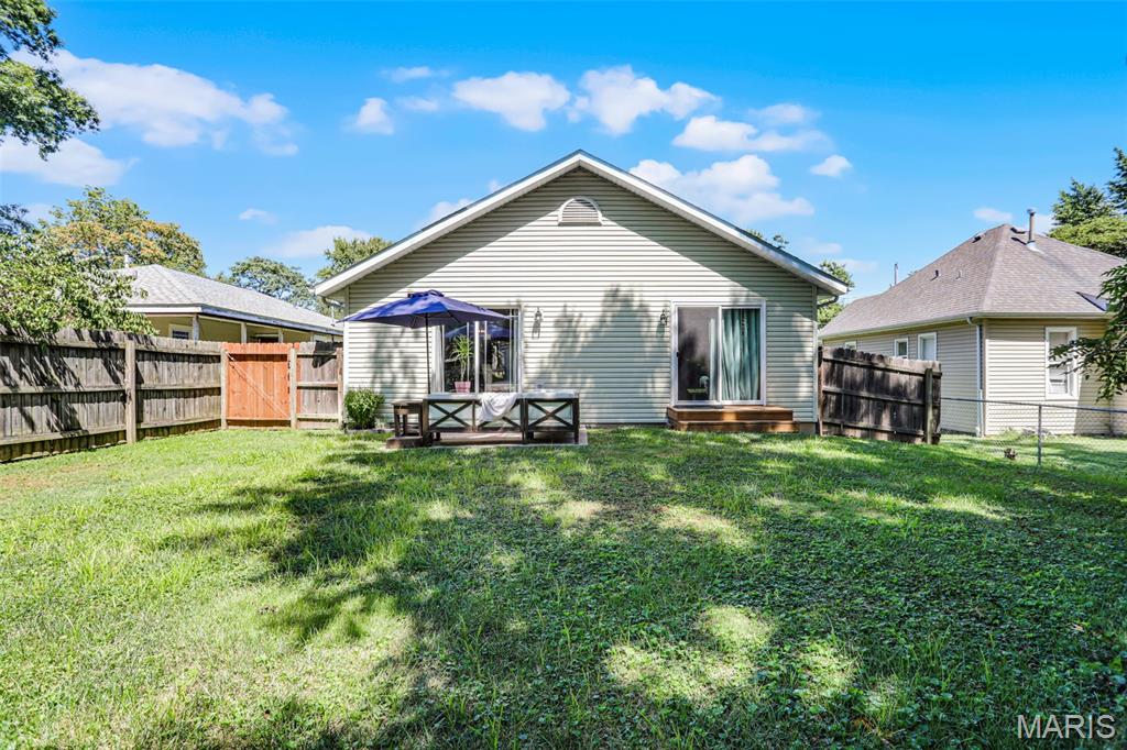 Welcome to 514 Gueltig Place, a delightful cottage-style home that blends charm, comfort, and convenience in the heart of Edwardsville. Tucked on a quiet, private street & just steps from the MCT trails, this inviting residence makes everyday living feel easy & enjoyable. Offering 3 bedrooms and 2 full baths, the thoughtful layout is filled with natural light & a sense of warmth throughout. The vaulted primary suite serves as a quiet retreat with its own bath, ample closet space & a sliding door leading to the serene backyard. The kitchen is both stylish & functional with stainless steel appliances, engineered hardwood floors, and a breakfast bar opening to the dining area—perfect for casual meals or entertaining. A spacious family room with vaulted ceilings creates an airy gathering space, while neutral paint, new carpet & updated fixtures add a crisp, modern touch. The fully electric home also includes main-floor laundry, tilt-out windows, a new water heater, and extra garage storage. Step outside to a fenced backyard with patio, ideal for summer evenings or weekend get-togethers. With bike trails, parks, schools, and downtown Edwardsville just a short walk away, you’ll love the combination of privacy and accessibility. This move-in ready home offers not just a place to live, but a lifestyle filled with comfort, convenience, and community.
