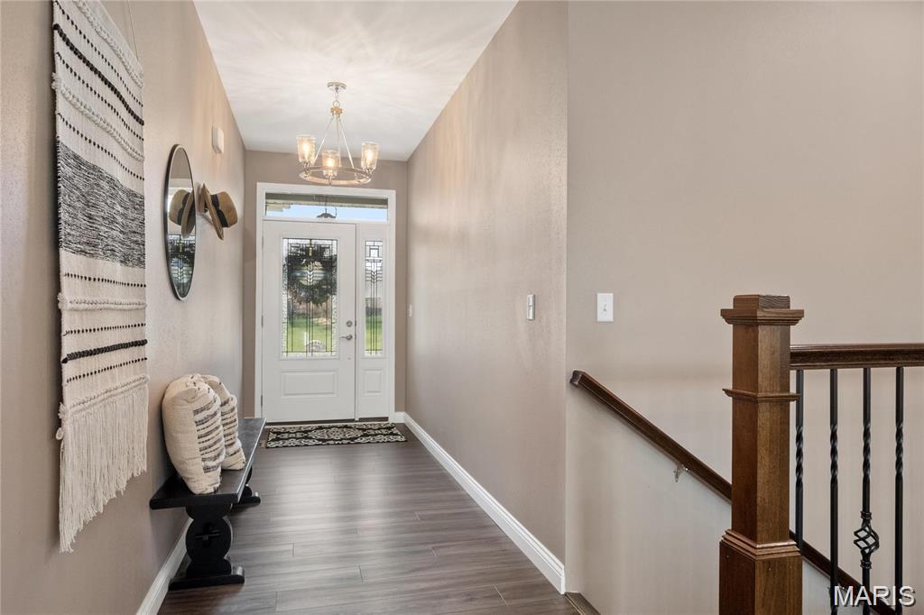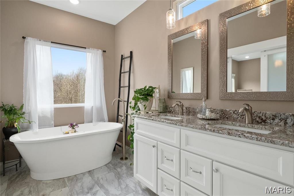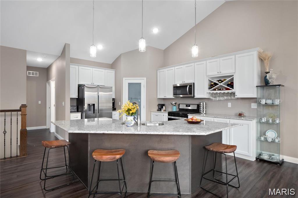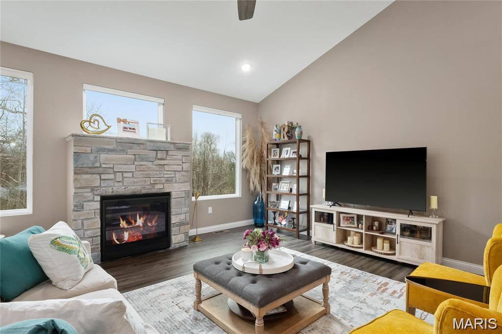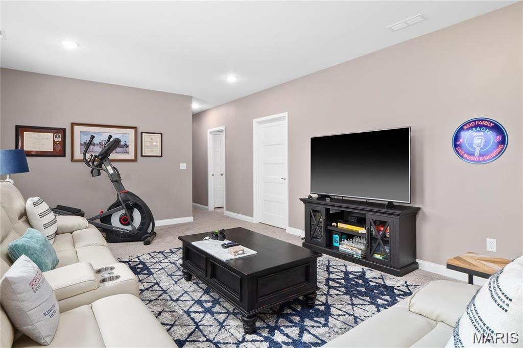 YOU WILL LOVE THIS BEAUTIFUL RANCH Built in 2021. This beautiful ranch offers a spacious open floor plan w/ a split bedroom concept offering the master on one side of the home & two other bedrooms on the other side. The main level has a gourmet kitchen featuring a butterfly island with granite countertops, showcase white cabinetry, and stainless appliances! Home offers a spacious open floor plan w/ a split bedroom concept offering the master on one side of the home & two other bedrooms on the other side. Grand master suite with soaking tub and built-in closets. Lower level bonus entertaining room, full bath,4th bedroom, abundance of storage and walkout to wooded lot! Perfect lot for a pool!!Other upgrades include an irrigation system, custom shades, extended patio and deck, three car garage & more.Don’t miss this opportunity close to SAFB, major highways, hospitals, and a short commute to St. Louis! Call your favorite agent today to see this one of a kind home!