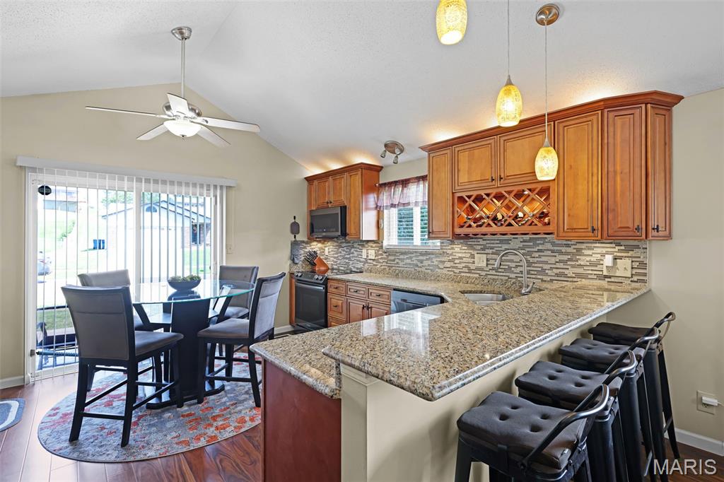 Welcome to 5182 Bristol Rock Rd! This 3 bedroom, 3 bathroom home is an amazingly well kept home in Whitney Chase. Walking through the front door puts you in the open concept living room and kitchen. The kitchen boasts 3 year old appliances, custom cabinetry and stone countertops. Three bedrooms on the main level, including the primary suite! Both bathrooms are beautifully remodeled with tile showers. The walkout basement in this one is amazing! Large family room, another full bathroom, two bonus rooms and a laundry/storage room. Love spending time outdoors? As if the fully fenced in backyard and beautiful stamped concrete patio wasn’t enough, pull down the overhead GARAGE DOOR SCREEN, grab a lawn chair, and tinker in the garage. Additional things to note: Furnace is 4 years old. Roof replaced last year. 240 outlet installed near the garage with relay for generator hookup if the power goes out! White vinyl fence and shed are newer. Grab your favorite Realtor and schedule a showing today!