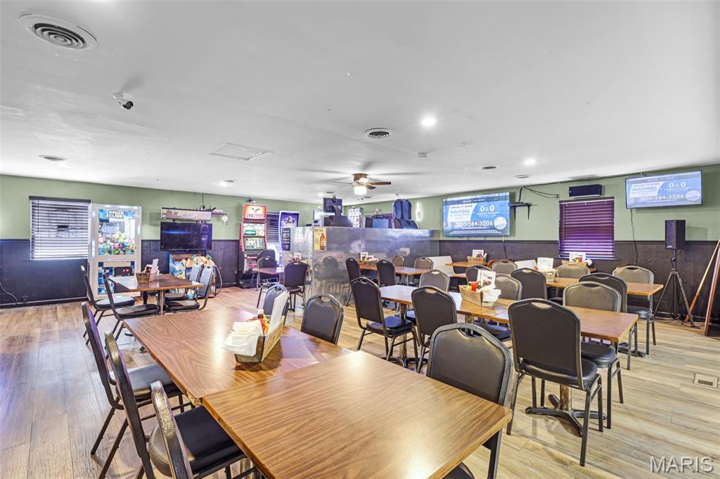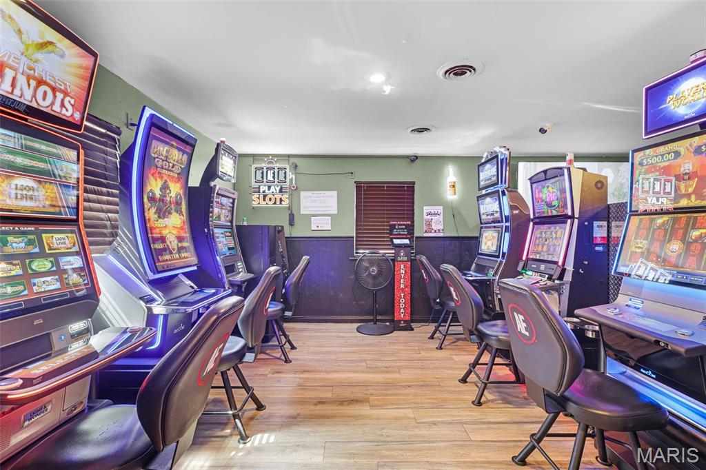 Great location and ample parking for this spectacular pool hall/bar restaurant! Great horseshoe shaped bar with new bar stools, 12 pool tables of which 10 are owned and 2 leased, 6 gaming machines leased through the State of Illinois Gaming. Also 4 arcade games, 4 dartboards located in the lower level private bar & bar cooler. Kitchen equipment stays which includes 3 large stainless steel sinks, 2 new Pizza Ovens, 2 freezers, stainless steel refrigerator, 2 fryers industrial hood-vent, coolers, grill plate-top, 6 burner gas grill, 2 ovens & 2 cold storage bins. Several big screen TV’s and sound system are all included. New owners would need to apply for licensing for gaming. One of only 2 pool bars located within a 40 mile radius. Several tournaments and special events are held here throughout the year like “Elite 8” “Midwest” “ATA” & “Zims Rack”. Touch Bistro for Cash register system. AT&T for Alarm system & Lorex for Camera System. Call for P& L’s with NDA signed.