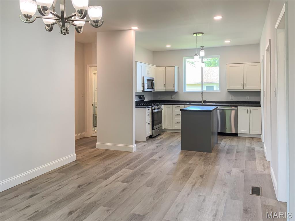 Step into timeless sophistication with this exquisitely renovated 3-bedroom, 2-bath home where no detail has been overlooked. From the moment you enter, you’ll be captivated by the expansive open-concept layout, soaring ceilings, and the seamless blend of classic charm and modern luxury. The heart of the home is a beautiful new kitchen featuring brand-new, high-end appliances, sleek countertops, and custom cabinetry — perfect for both everyday living and entertaining. The spacious living area is flooded with natural light and offers a warm, inviting atmosphere ideal for hosting or relaxing. Retreat to the luxurious primary suite, complete with an oversized footprint offering flex space for a private home office, reading nook, or dressing room. Both bathrooms have been completely reimagined with designer finishes, gorgeous tile work, and spa-inspired details. Situated on a rare double lot just steps from Dupo High School, the property also includes a second structure — an incredible opportunity for a guest house, studio, or income-producing rental. While the second building is sold AS-IS, it’s been gutted and is ready for your vision. New roof, HVAC, and water heater complete this move-in-ready masterpiece. This is more than a renovation — it’s a full restoration of beauty, style, and function.