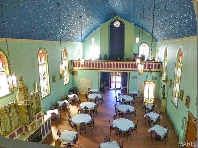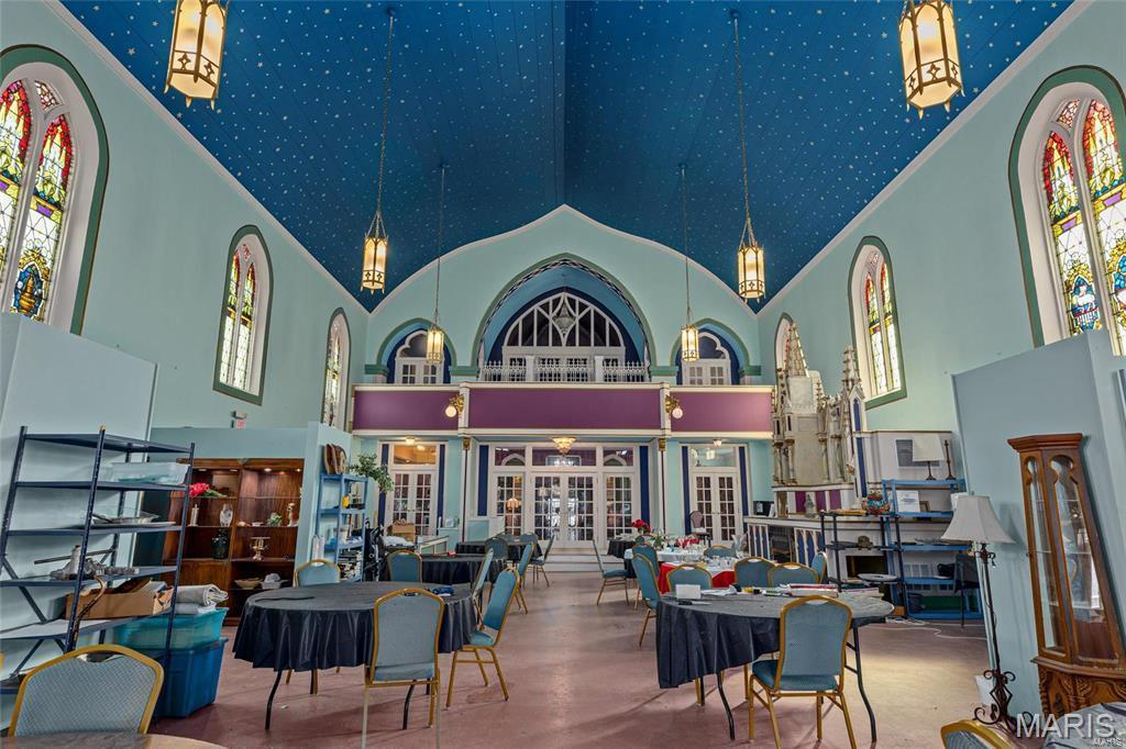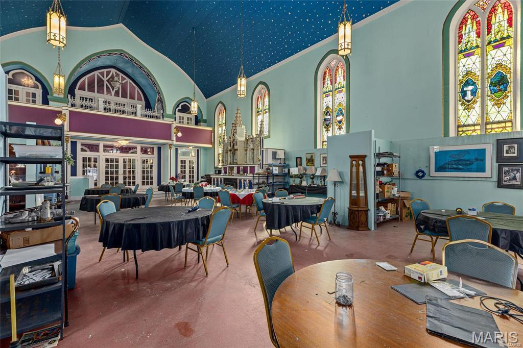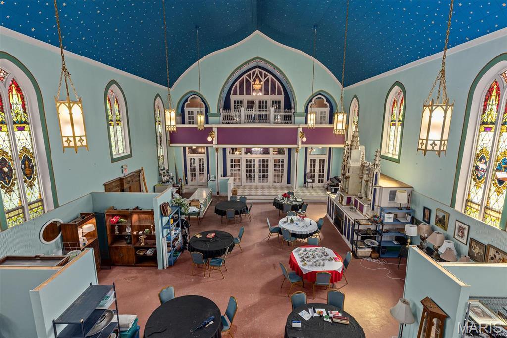 Truly one-of-a-kind! This beautifully restored former church has been converted into a stunning single-family residence blending historic character with modern comfort. Soaring ceilings, original stained glass, terrazzo floors, and architectural details throughout. Spacious open living areas, full kitchen, and versatile layout perfect for entertaining or creative use. Located in the heart of Carlinville, this unique home is next to a well-established restaurant and duplex with 3 car garage—not included in the list price, but available for purchase separately. Endless potential for live/work opportunities, rental income, or event hosting. A rare opportunity to own a piece of history with room to grow!