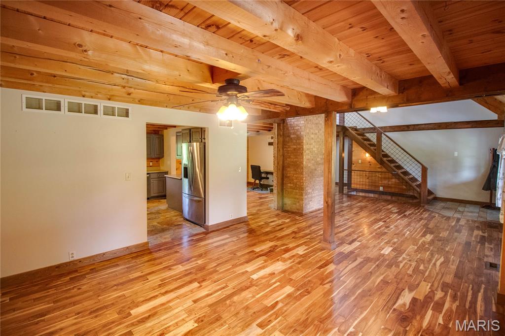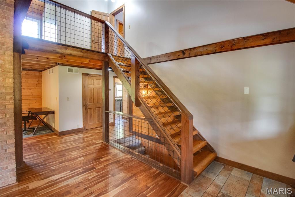 Coming Soon! Nestled on 5.1 acres just outside of Millstadt, Illinois, this stunning log home offers the perfect blend of rustic charm and modern comfort. Surrounded by mature trees and open space, the property provides a peaceful retreat while still being conveniently located near Belleville, Columbia, and just a short drive to downtown St. Louis. Inside, the home features an open-concept main floor with soaring ceilings, exposed log beams, and a cozy wood-burning fireplace that anchors the living space. The kitchen is outfitted with stainless steel appliances and custom cabinetry, making it ideal for cooking and entertaining.