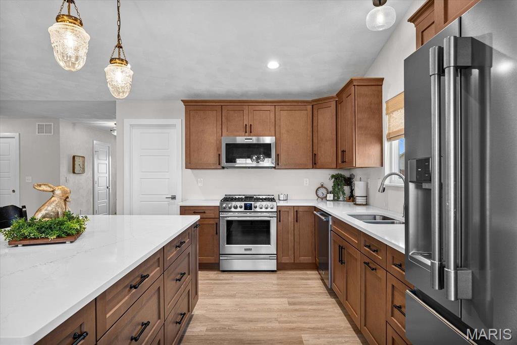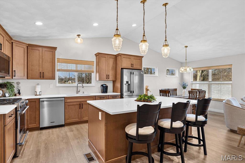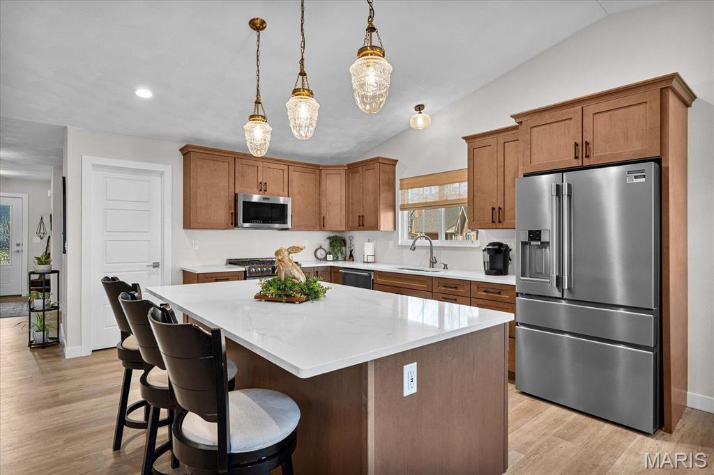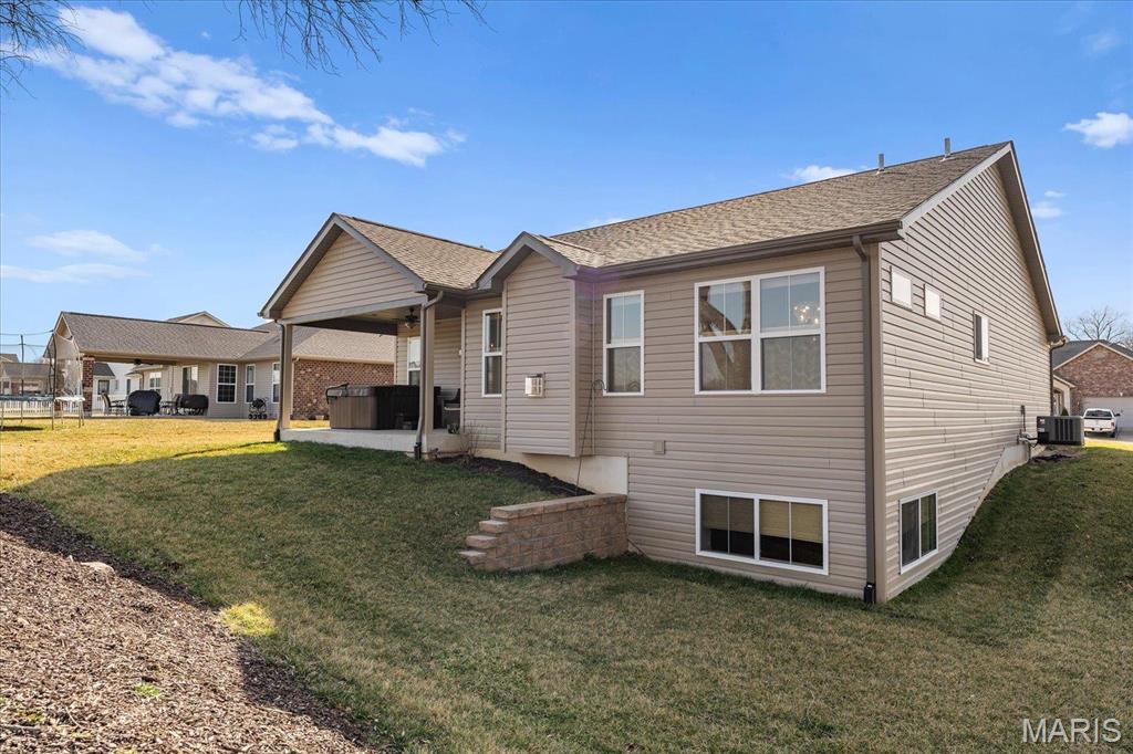 Absolutely stunning 4-Bedroom Millstadt, Illinois Home – Modern Luxury in a Quiet Court Setting! Discover this pristine, nearly new 4-bedroom, 3-bathroom home! Built just one year ago by one of the areas premier builders, this exquisite home boasts an open floor plan, vaulted ceilings, & gorgeous high-end finishes throughout. The heart of the home is the spacious kitchen, complete with a walk-in pantry, stylish cabinetry, & a generous island perfect for gathering. The main floor Primary Suite offers a serene retreat with a luxurious ensuite bath and generous closet space. Downstairs, enjoy two additional bedrooms, a full bath and a huge family room, all accessible by two staircases, adding both style and convenience. Step outside to the covered porch, perfect for relaxing or entertaining in this peaceful cul-de-sac setting. Additional features include; 2 car garage with additional access to the lower level, main floor laundry, covered front entry, lower-level kitchen rough-ins & GREAT views!