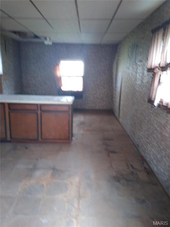 The kitchen/dining room area is approximately 25′ x 11′. The house was set up for propane utilities.