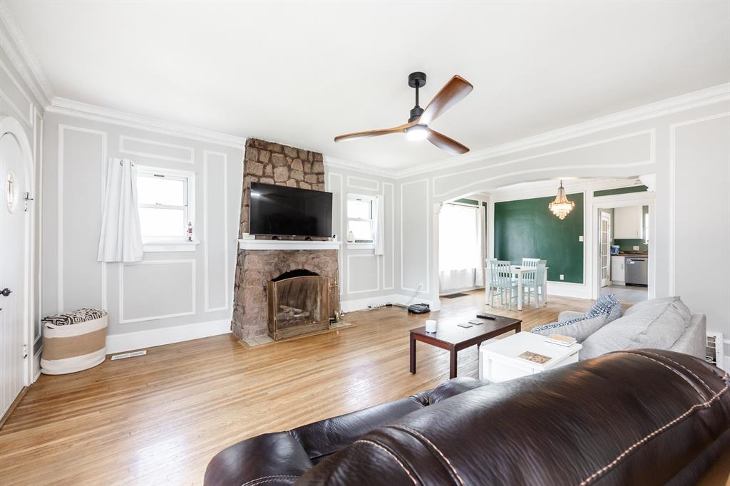 Nestled in a desirable East End neighborhood, this charming bungalow-style home blends classic appeal with modern updates. A welcoming covered front porch invites you inside, where gleaming hardwood floors, French doors, and arched doorways add warmth and character throughout. The cozy living room features a gas fireplace and built-in mantle, perfect for displaying your favorite books or keepsakes.