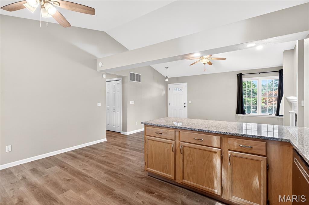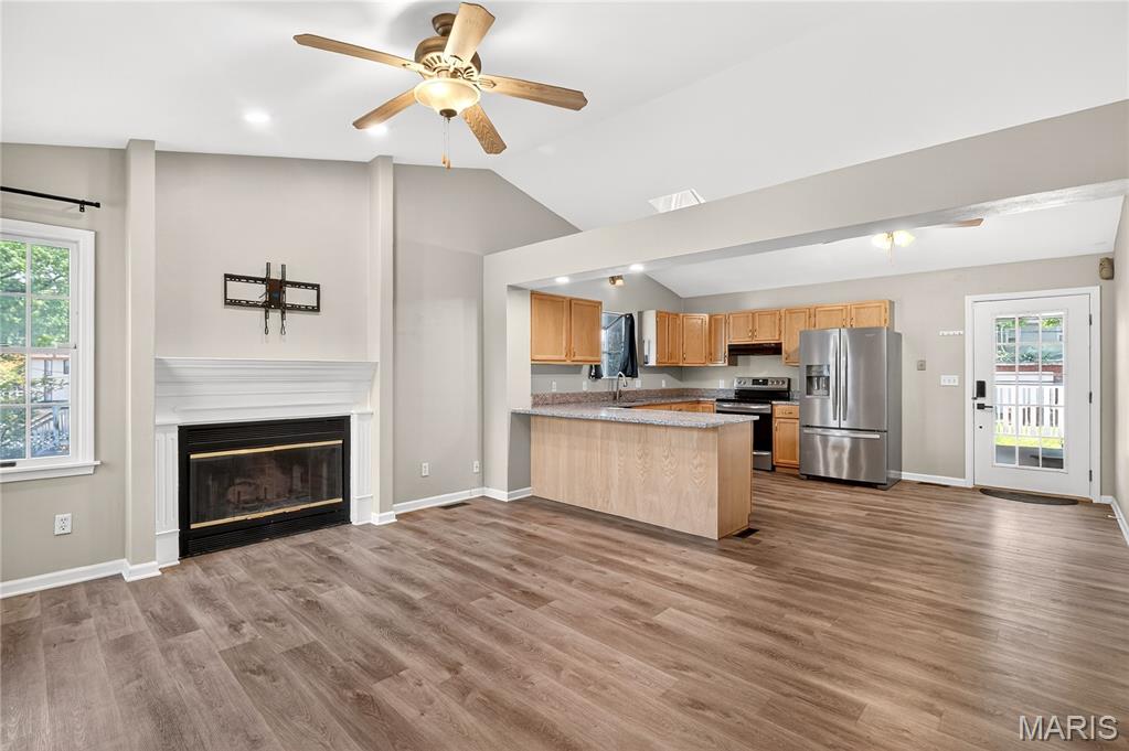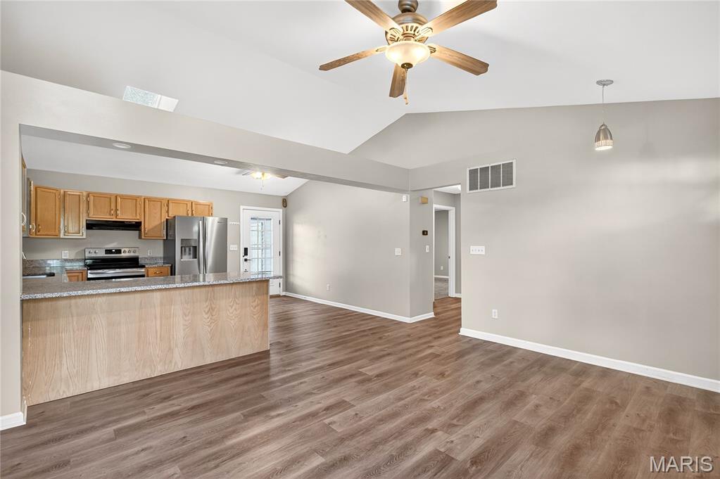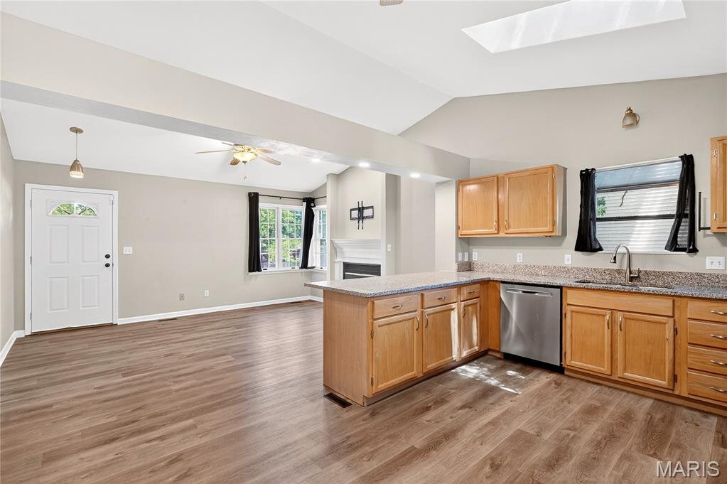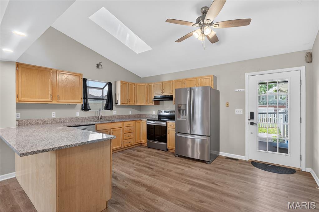 HOME BACK ON MARKET DUE TO NO FAULT OF SELLER!! BUYER FINANCING FELL THROUGH. This beautifully updated 2 bed, 2 bath home is surprisingly spacious and completely move-in ready, located just minutes from vibrant downtown Belleville! Featuring an open kitchen with granite countertops and stainless steel appliances (refrigerator, range, and dishwasher), vaulted ceilings and skylights, this home is designed for modern living. Both bedrooms offer generous walk-in closets, with new LVP flooring in common areas and newer carpeting in the bedrooms. Numerous recent upgrades ensure peace of mind, and the property will be fully compliant with occupancy standards. Enjoy a lovely backyard with alley access to the garage, providing ample off-street parking. A must-see gem!