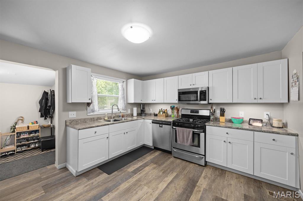 Charming and updated 4 bedrooms, 3 bath home offering 2,435 sq ft of flexible living space. The open main level features two bedrooms connected by a modern Jack & Jill bath, a spacious kitchen with separate pantry, and a handy drop zone off the deck. A third bedroom, full bath, and main-level laundry are tucked just off the living area. Upstairs, a versatile space with ensuite bath can serve as a fourth bedroom, home office, or recreation room. Situated on a large corner lot with room for gardening, play, and extra parking. The carport was added in 2023 and fresh gravel laid in 2024. Plenty of storage in both the detached garage and walk-up basement. Roof and water heater 2017. Ideally located, a short distance to downtown, dining, and schools.