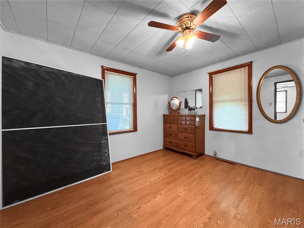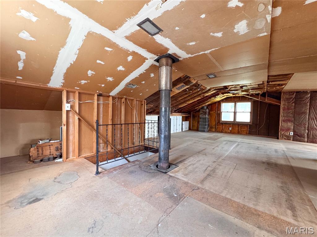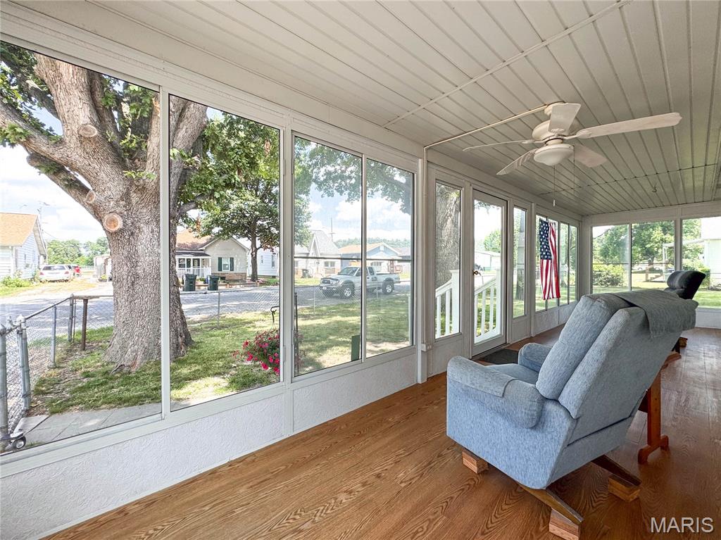 Step into timeless charm with this versatile 3-bedroom, 1-bath home offering over 1,300 sq. ft. of finished main-level living, plus the promise of 840 sq. ft. upstairs awaiting your vision—complete with a second bath. Stunning 30′ sunroom graces the front, perfect for slow afternoons and golden-hour reflections. Inside, the spacious living room showcases original hardwood floors, while Bedrooms 1 & 2 offer generous space and double closets. The heart of the home—a warm, open kitchen/dining/hearth room—features vintage Schifferdecker cabinetry and a wood-burning stove that fills the home with cozy, cost-saving warmth. A tucked-away MAIN FLOOR laundry closet adds convenience while the unfinished basement offers additional storage (as if you needed it with those TWO MASSIVE OUTBUILDINGS!). The bath includes a walk-in shower and ample linen storage. Bed 3, at the rear of the home, makes a serene office or guest retreat. Upstairs, the big lofted space—prepped for finishing—beckons as a dreamy family or rec room. Outside, the double-fenced yard has great flexibility with mature trees, perennials and a private well for garden lovers. A 2021 metal roof crowns it all. 2 versatile sheds/outbuildings (42 x 30 and 30 x 21) w/12′ overhead door w/new opener and cozy workshop area – offer space for hobbies or ambition. Both have alley access, great workspaces, concrete flooring and more! Great investment opportunity as you add your own improvements & touches. Truly a home with room to grow.
