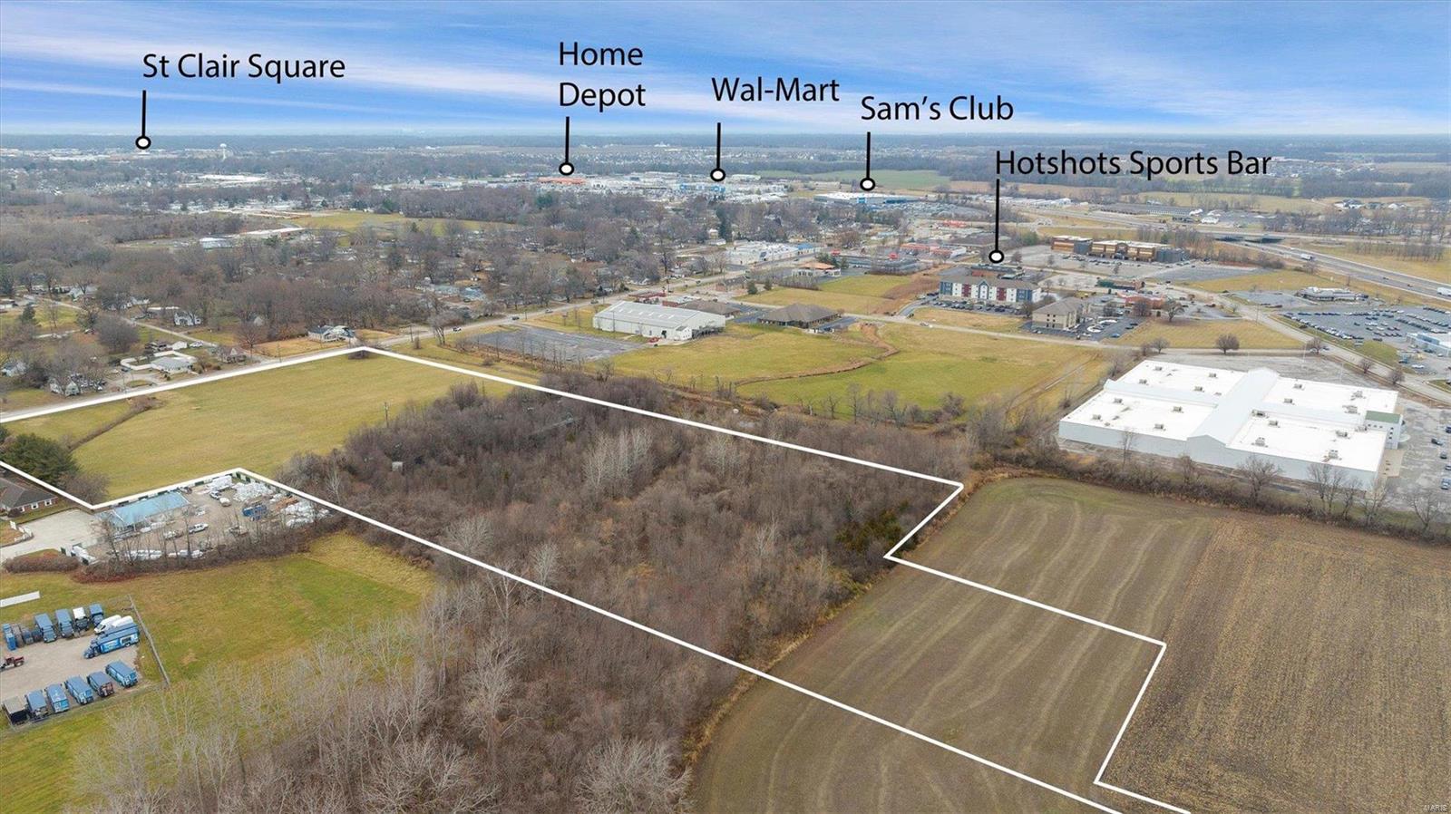 Prime commercial lot for sale. 15 acres of prime commercial land currently zoned as 0065 – Commercial w/Farm. High traffic area. Located on Hartman Lane just minutes from Interstate 64 and adjacent to Central Park Plaza. Located near retail, entertainment and businesses with 600 feet of frontage on Hartman Lane. Less than 1 mile to Interstates 64 and approximately 8 miles to Interstate 255 and 270. Close to Scott Air Force Base, Green Mount Crossing Drive, and Frank Scott Parkway. Main building approximately 1296 square feet with 2 out-buildings. Buildings are not currently in use. Former site of DP Golf Center. 10% Earnest Money to First American Title.