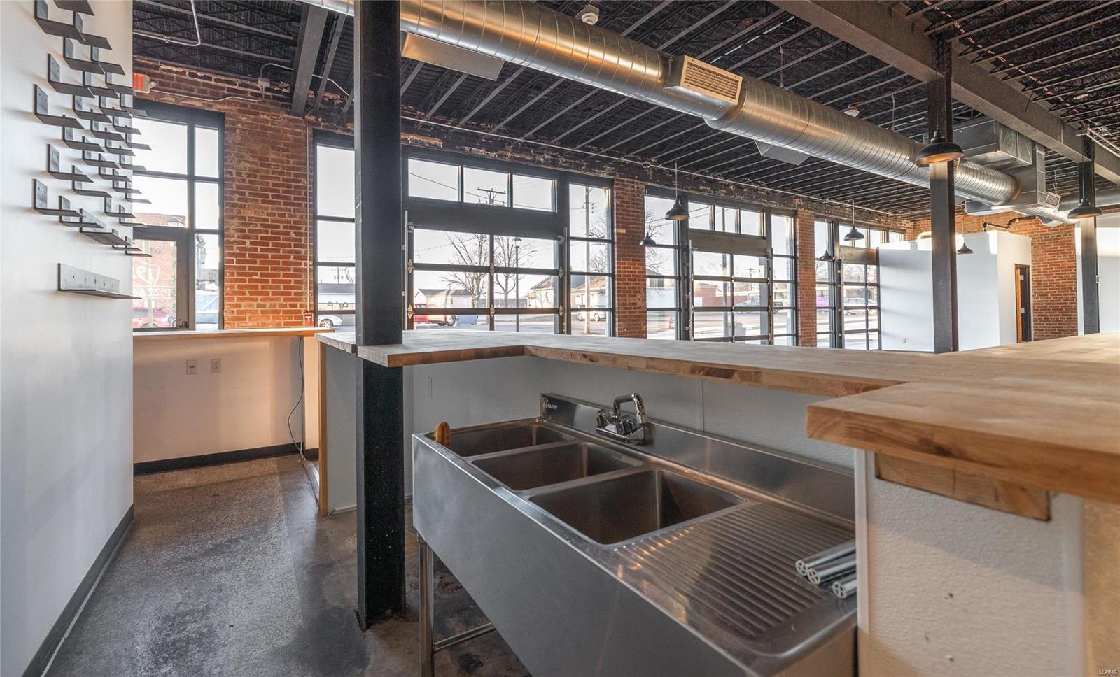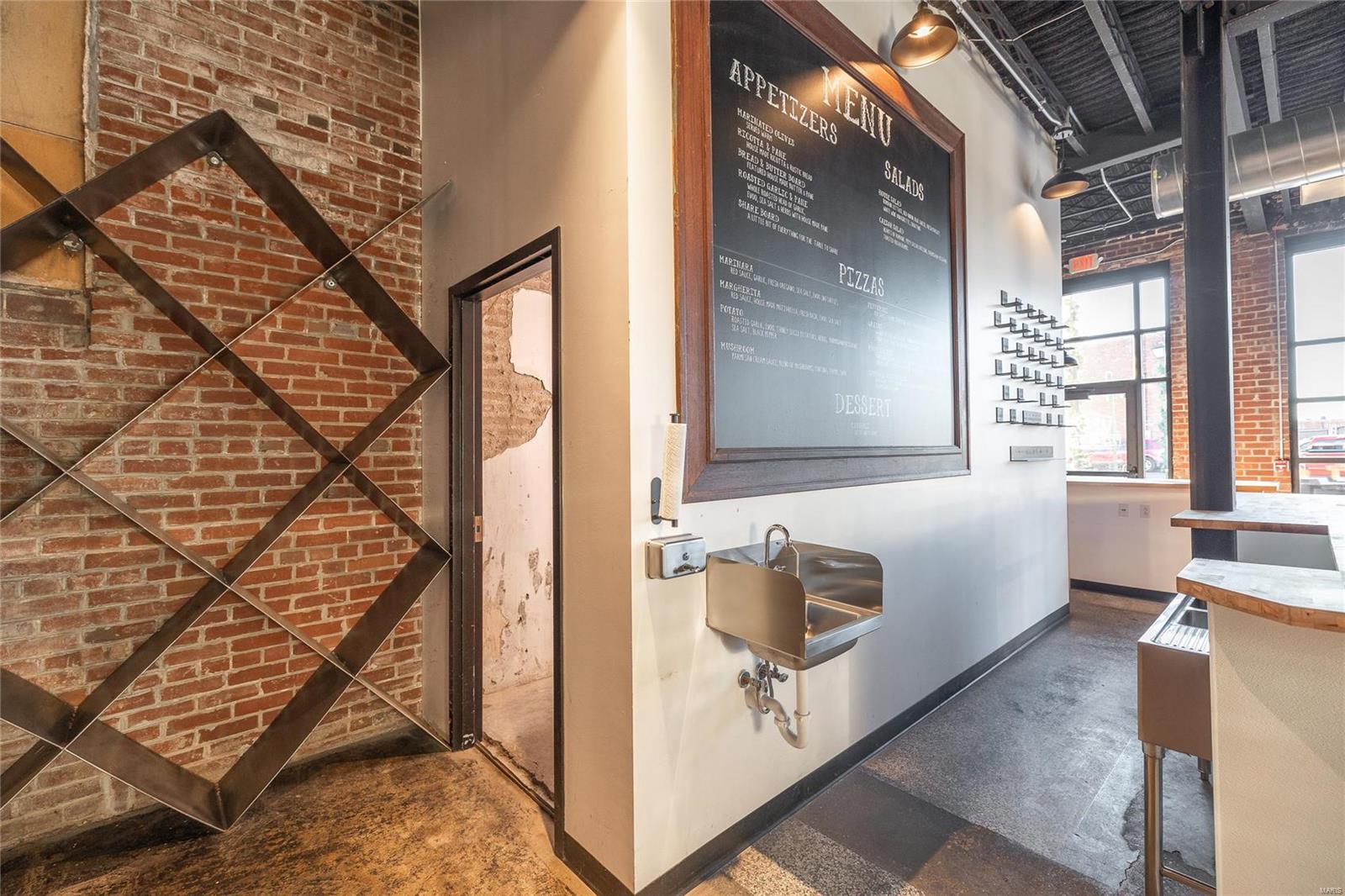 Great space with a recent open modern buildout in the heart of Madison County, IL including overhead glass garage doors. Former use was a Pizza Restaurant. The location has 1,800 square feet, 2 bathrooms, a Forno Bravo Pizza Oven (for the right offer) and a new parking lot with 17 spaces. Wood River location is conveniently located between Alton and Edwardsville, Illinois. Call for details. TIFF financing is available at location. Owner will help with describing TIFF details. Location: City
