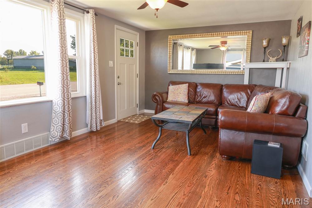 Welcome to this well-maintained 2-bedroom, 1-bathroom home in Waterloo. The interior offers hardwood flooring throughout most of the living area with tile in the kitchen and bath. Major updates completed since 2018 include a new roof, gutters, siding, HVAC system, and a full kitchen renovation featuring rich wood cabinetry, updated countertops, and stainless steel appliances. The living room has a large picture window that fills the space with natural light and connects seamlessly to the dining area. Outside you’ll enjoy a generously sized backyard and an oversized one-car garage. The unfinished basement is full of potential – perfect for storage, work space or finishing into additional living space. This home is move-in ready and a must see!