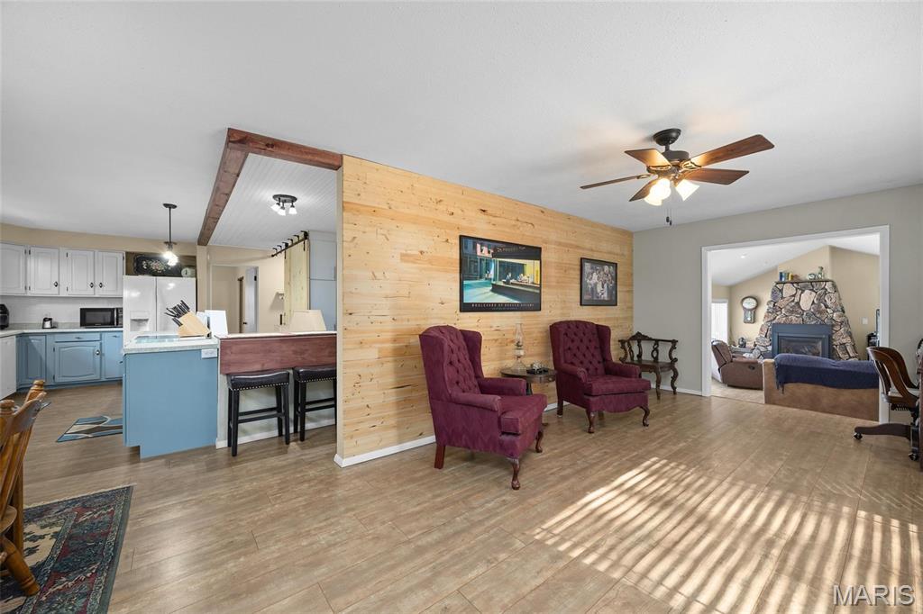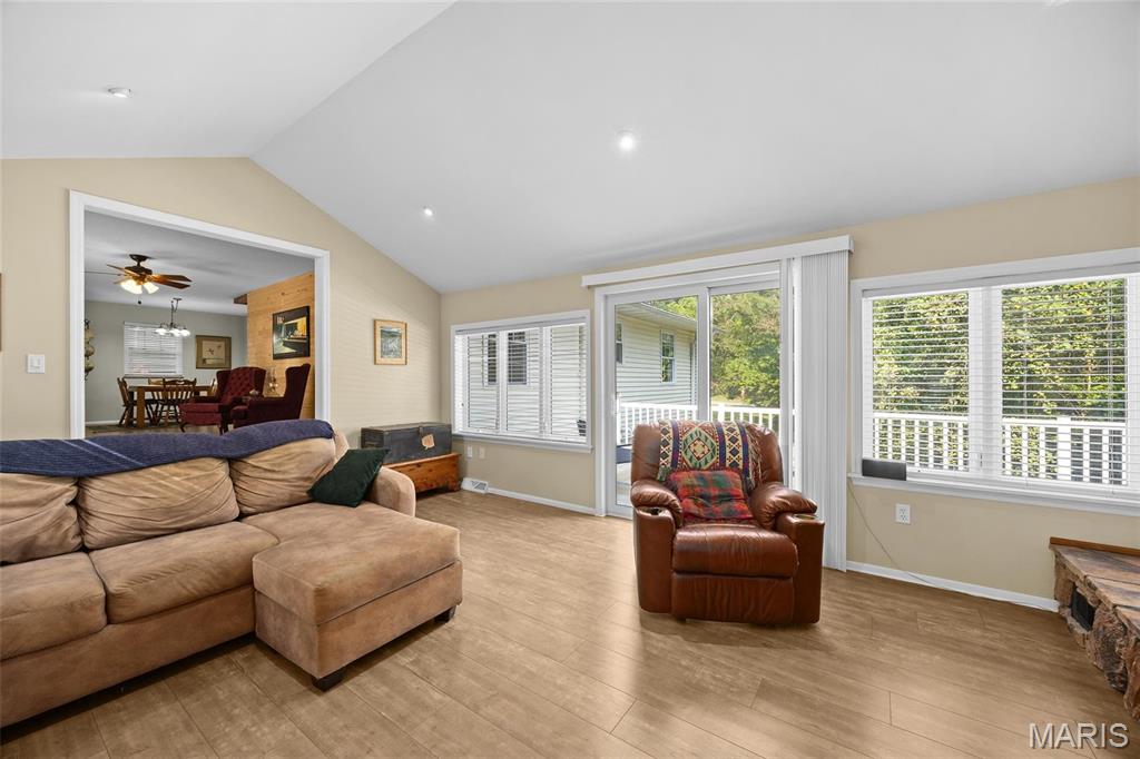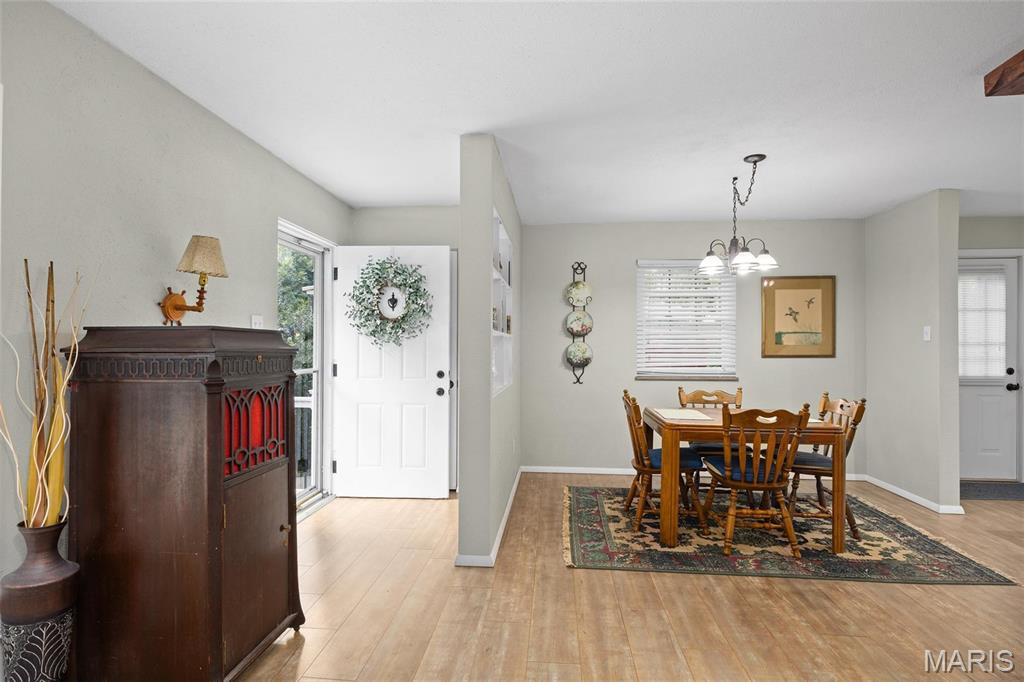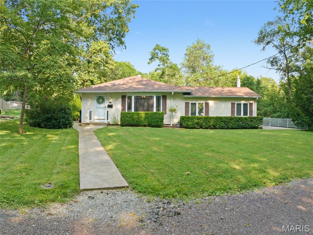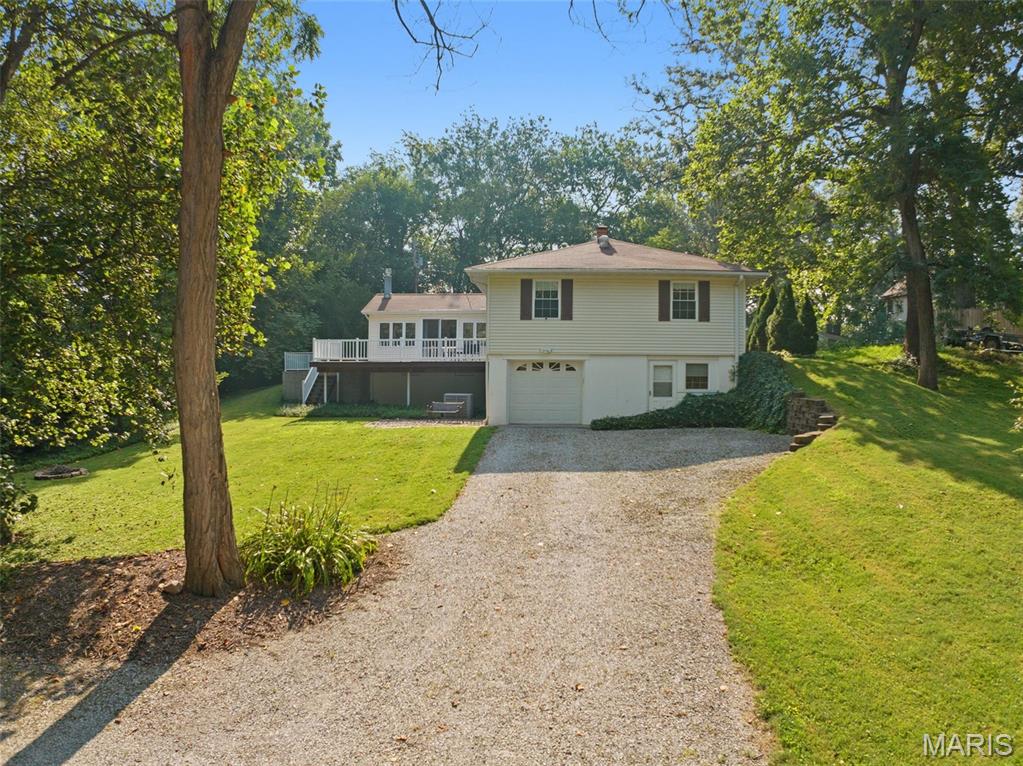 Don’t miss this 3 bedroom, 2 bath, updated home on private .57 Acre lot. Main floor offers 3 bedrooms, full bath, living, dining, equipped kitchen, family room with fireplace with access to spacious deck. Bright open airy floor plan. Lower walk out level offers possible area for 4th bedroom with extrior exit. an updated bath, right oversized laundry room. Garage is a tandem 2 car with area for work bench and separate storage. This property has had meticulous maintenance and care. Convenient to School, Shopping, restaurants and easy highway access to Scott AFB and St. Louis.