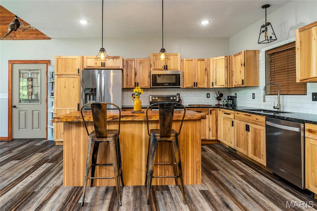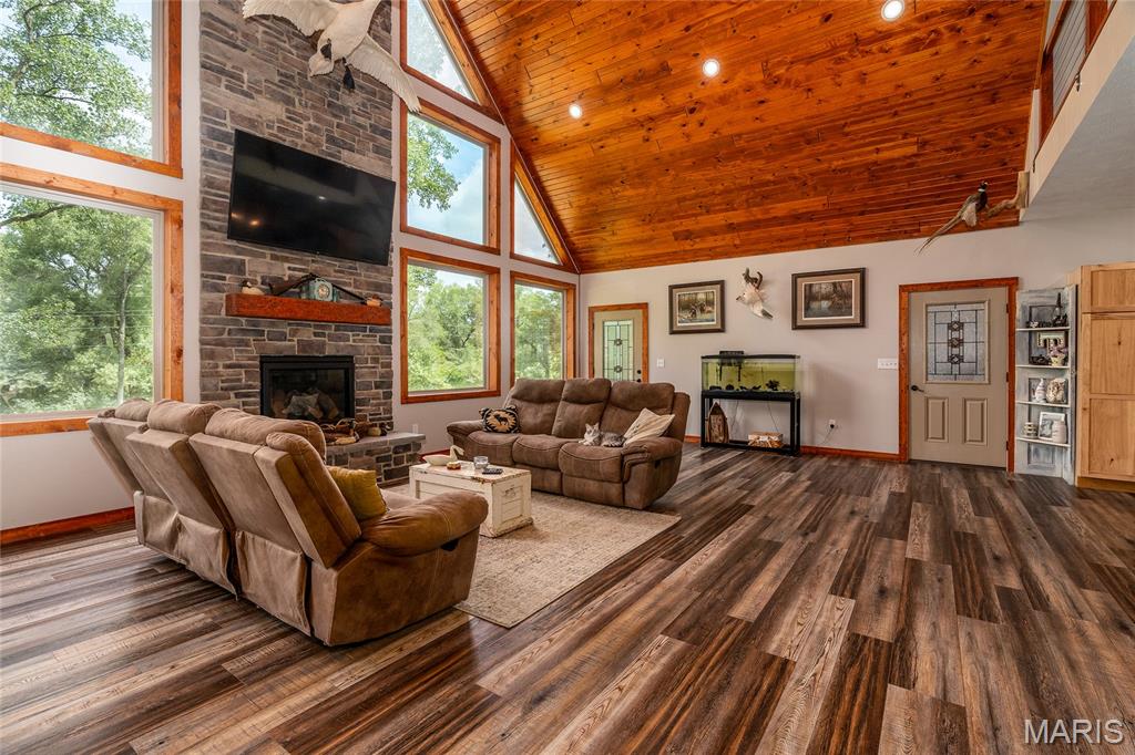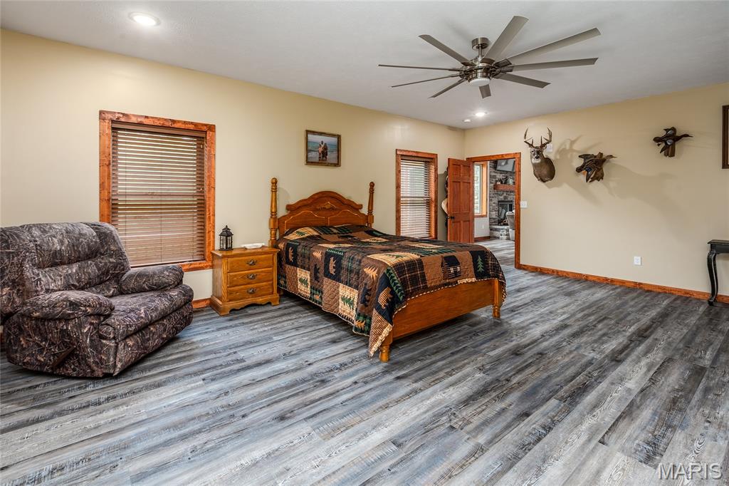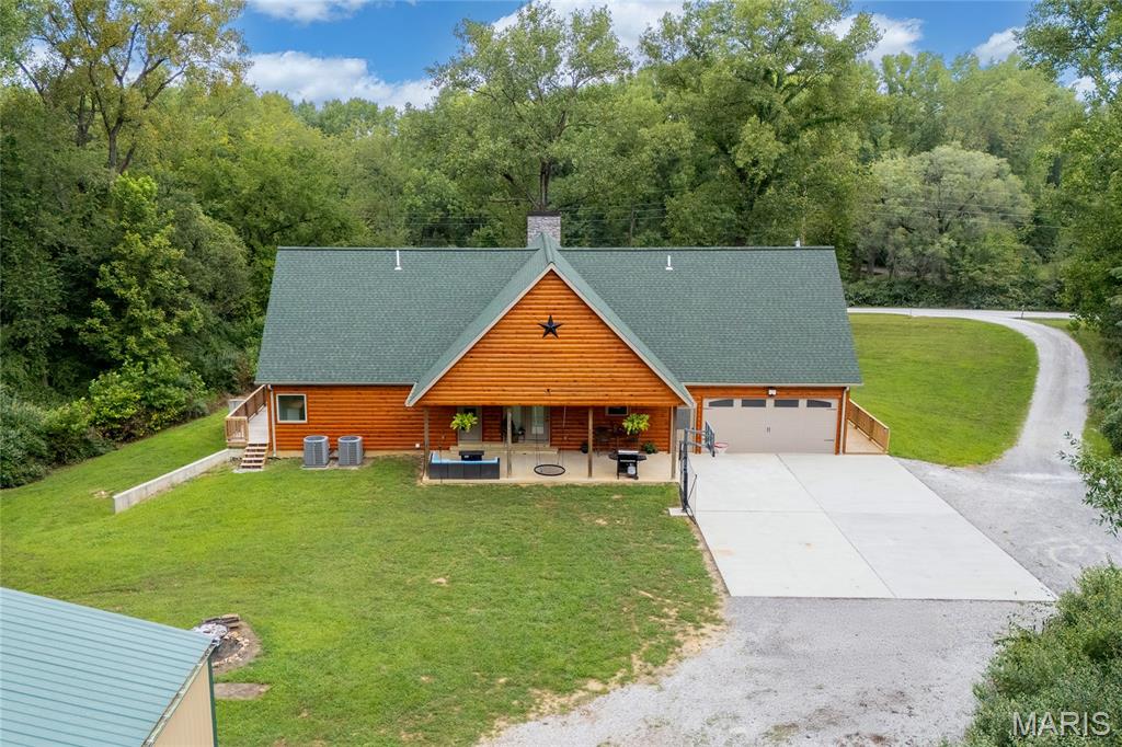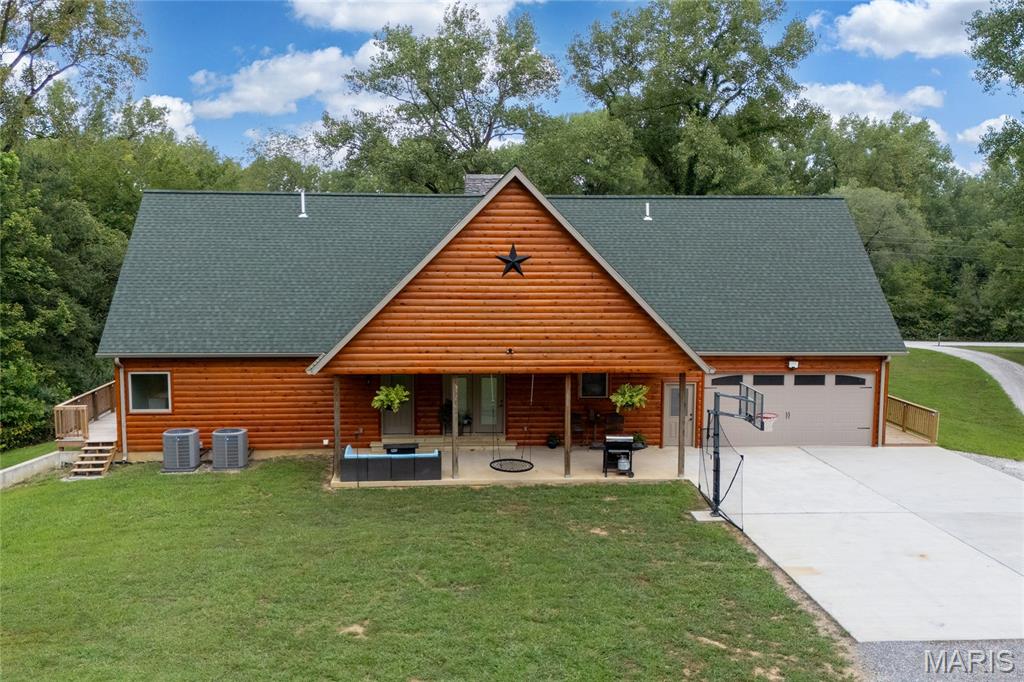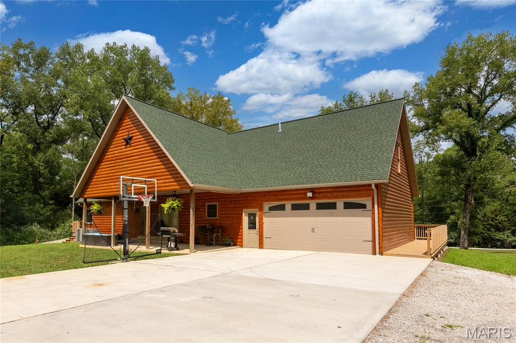 Someone’s dream home awaits them. This beautiful quarter log home is nestled right outside of the town of DuQuoin. Surrounded bytrees and sitting up on a hill has a very private setting. You can see wild life of all sorts and go hunting or fishing in your back yard. The pond is stocked with bass,bluegill and catfish. The house has an open floor plan in the main level with 25 ft vaulted ceiling in the livingroom and a gorgeous fireplace. The kitchen has customhickory cabinets with granite countertops. A giant master bedroom with a large walk in closet and private bath with walk in shower on the main level. The loft area overlooks the livingroom and is perfect sitting area with two bedrooms and a full bath. The basement is ready to be made into your own. Plenty of space to create what fitsyour family with laundry, two bedrooms and an option for a full bath with plumbing already installed . 2 1/2 car attached garage along with a 30 x 60 pole barn so youwont run out of room. Enjoy a 12×32 covered patio or the large wrap around decks on each side. Options to keep a 35 ft indoor batting cage in the pole barn and playbasketball on the concrete poured pad. Dont miss out on this log home! Call to schedule your showing!