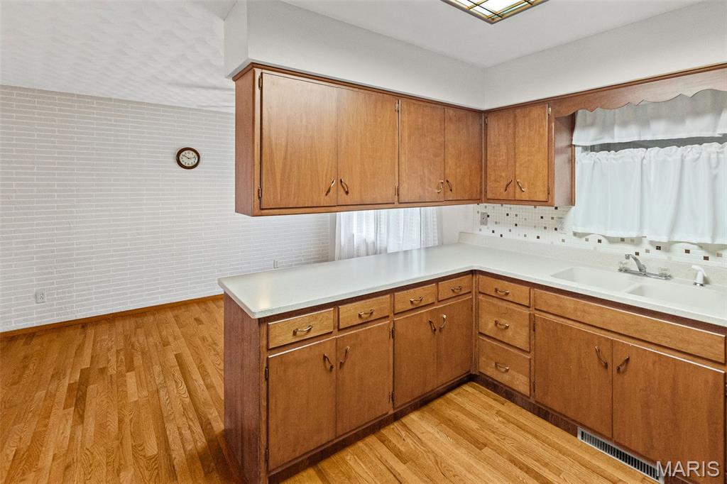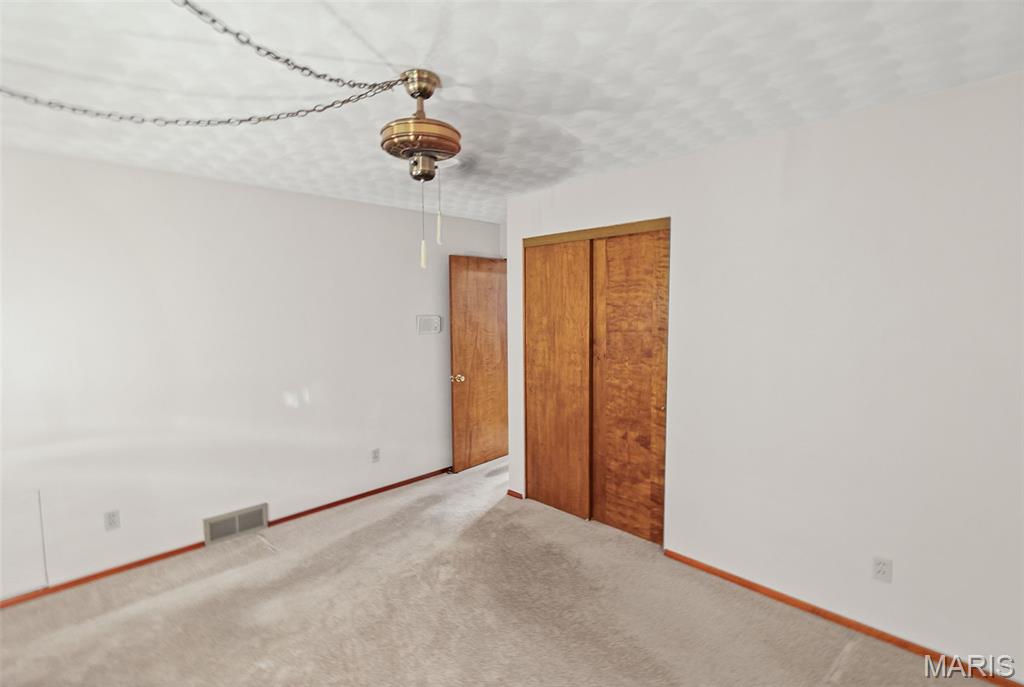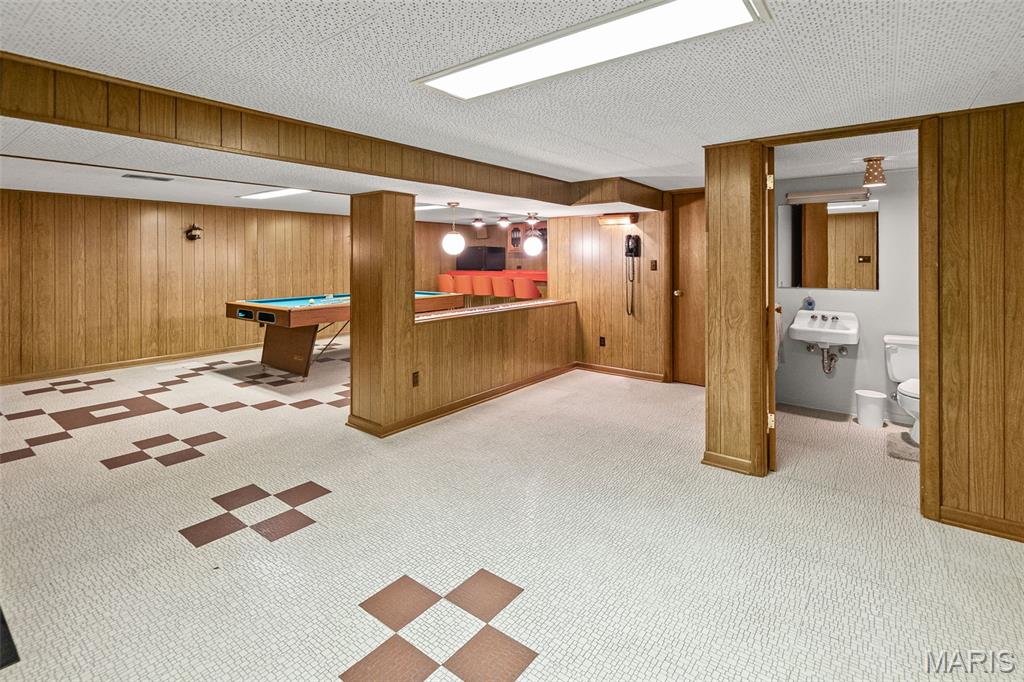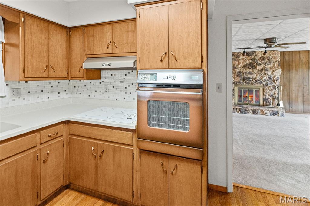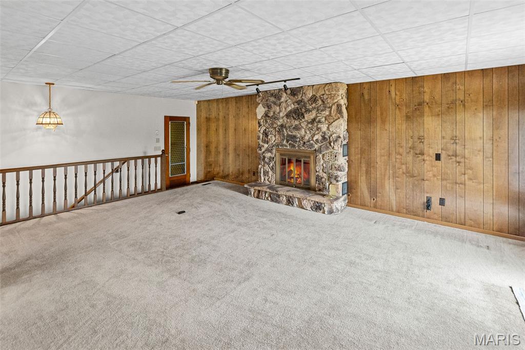 Well maintained 1 owner brick ranch with 3BR/1.5 bath situated on a corner lot. Large FR w/a wood-burning stone fireplace. LR has bay window, coffered ceilings w/medallion. Kitchen has Corian counter tops, ceramic backsplash, electric cook-top, built-in oven & refrigerator. Kitchen/Dining have wood floors. Bath w/walk-in shower & ceramic tiled walls. Freshly painted walls & carpets cleaned on main level. FR has open staircase that leads to the partially finished basement w/a 1/2 BA, huge FR, dry bar w/stools & cabinetry & pool table included. This room is ready for entertaining complete with an electric freestanding FP. You will love the floors & the Retro feeling of this FR that is perfect for entertaining. The main level also features some of the Retro feeling you find in basement. 2 car side entry garage w/hot & cold water. Nice patio w/partial brick wall. Roof & Utility bldg 2025. Sewer line from house to street replaced approx. 15 yrs ago. Water heater approx. 8 yrs.