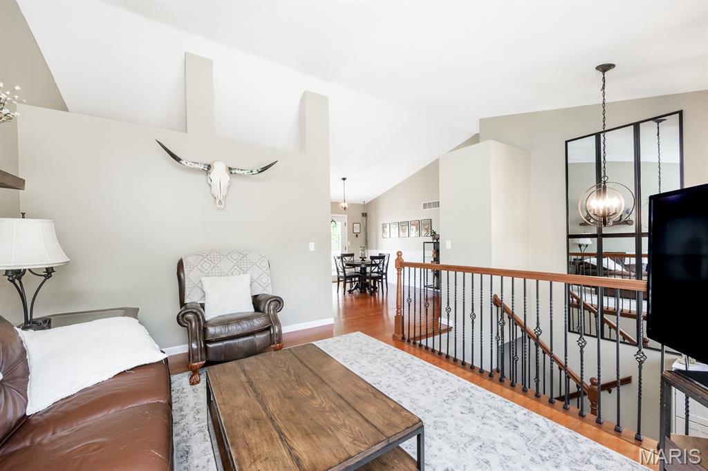 Exuding warmth and charm this home features a classic design with a well-manicured lawn. The property boasts an attractive facade and ample curb appeal. Inside, a vaulted layout enhances the living space, creating a cozy atmosphere for gatherings. Abundant natural light spills through large windows, illuminating the living room offering a comfortable setting, perfect for relaxation or entertaining guests. The spacious bedrooms provide tranquility, while the Primary features an en-suite bathroom for added convenience. The Lower Level offers an additional family room with a half bath and spacious laundry room. Step out onto the deck overlooking a beautiful backyard with an additional patio area for a serene escape, ideal for outdoor dining and leisure activities. Garage equipped with EV charger.