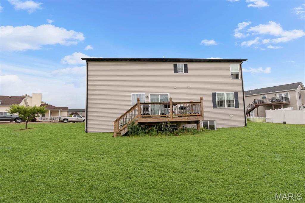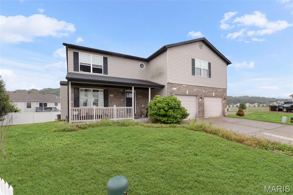 Welcome to Emerald Valley Estates – Where Comfort Meets Style! Tucked away in a quiet cul-de-sac, this beautiful two-story home offers the perfect blend of space, charm, and everyday function. With 4 bedrooms and 3 baths, there’s room for everyone to spread out and feel right at home. Step into a spacious kitchen that’s built for both cooking and gathering—complete with maple cabinetry, stainless steel appliances, a breakfast bar, pantry, and easy access to the 13×13 deck for outdoor dining or weekend BBQs. The living room brings warmth with a gas fireplace and detailed mantel, and there’s a separate dining room ready for holidays or dinner parties. Upstairs, the primary suite is a standout—recessed lighting, two walk-in closets, and a spa-inspired bath make it a true retreat. All bedrooms include tray ceilings, and the second-floor laundry adds everyday convenience. Additional features you’ll love: zoned heating and cooling, crisp white 2-panel doors throughout, an oversized 2-car garage, and a lookout basement with rough-in plumbing ready for your future finish. Enjoy community perks like a small stocked lake just a short stroll away. Homes like this don’t come around often—schedule your tour and see what makes this one special. Sold AS-IS. No repairs will be done by the seller.