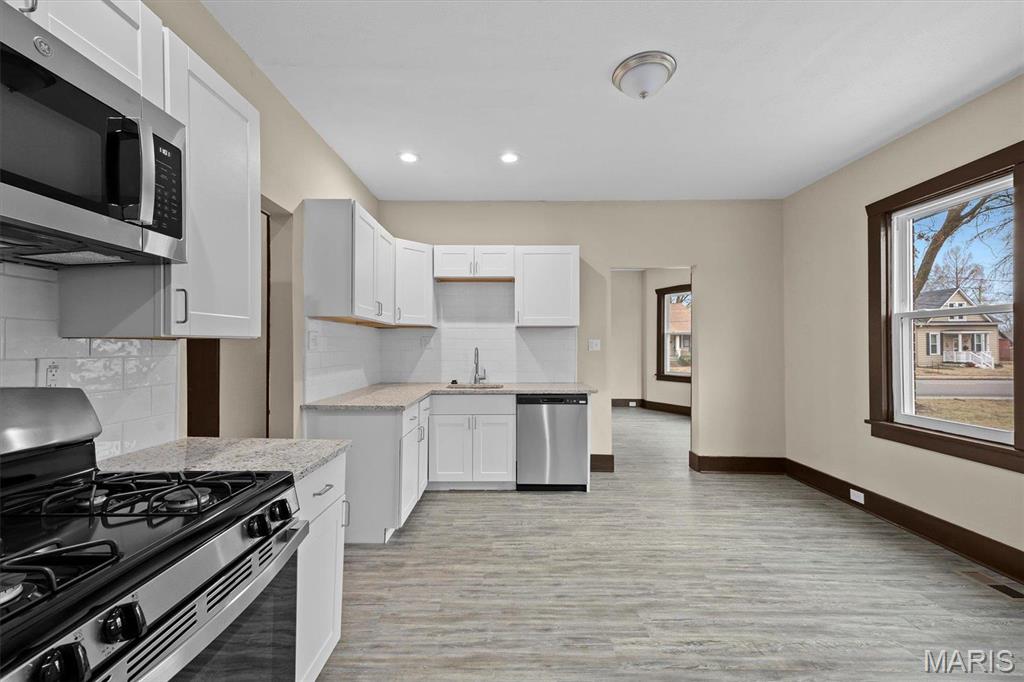This Belleville home welcomes you with new flooring, fresh paint and sun-filled windows. There is room for everyone in this 3 bed, 2 bath home featuring a gorgeous kitchen with granite countertops, stainless appliances and white shaker cabinetry. Fully updated bathrooms! Meets all your storage needs with the 1 car detached garage and the full basement. HVAC replaced 2024. This one will not last long, call your agent today! This is a Fannie Mae Property. Before making an offer Buyer and/or buyer agent should verify all MLS data.