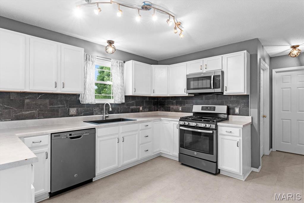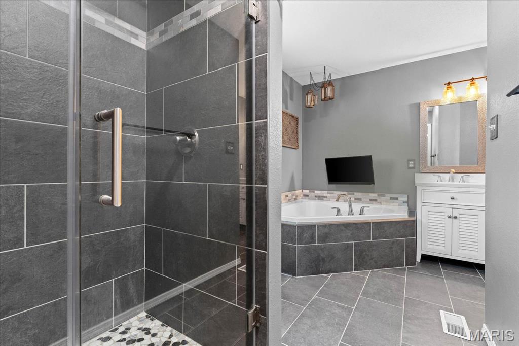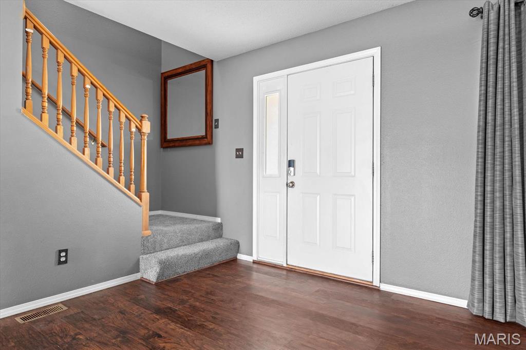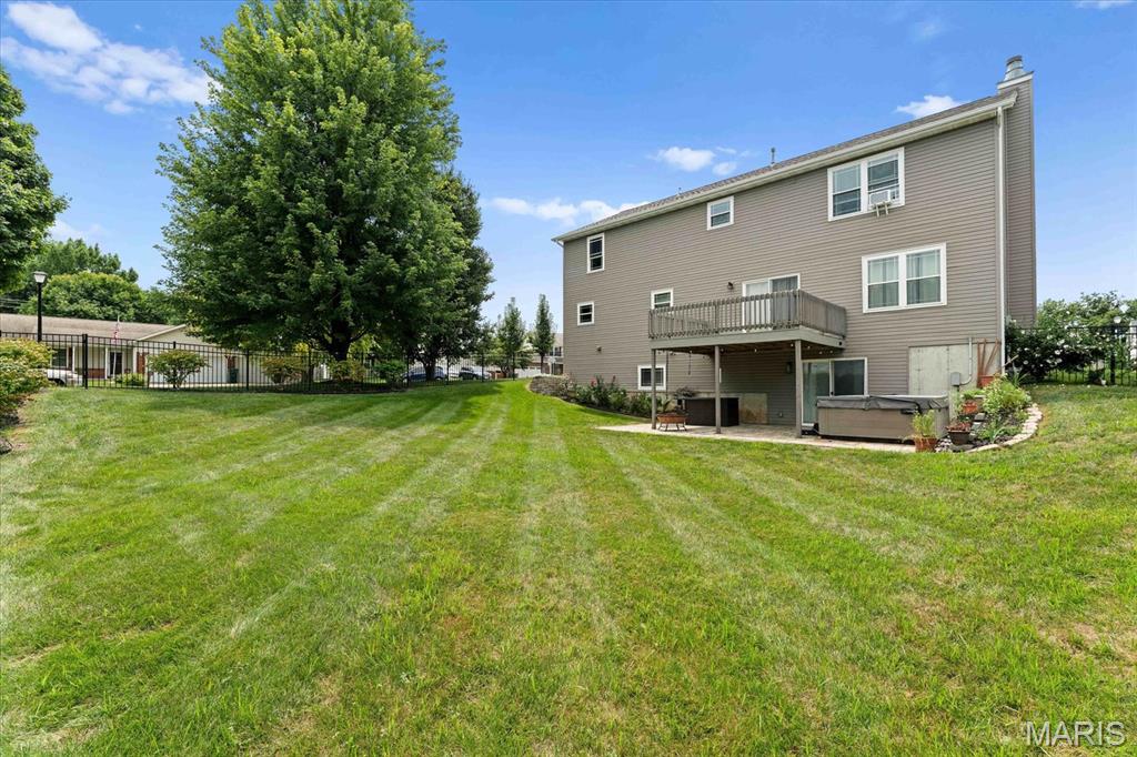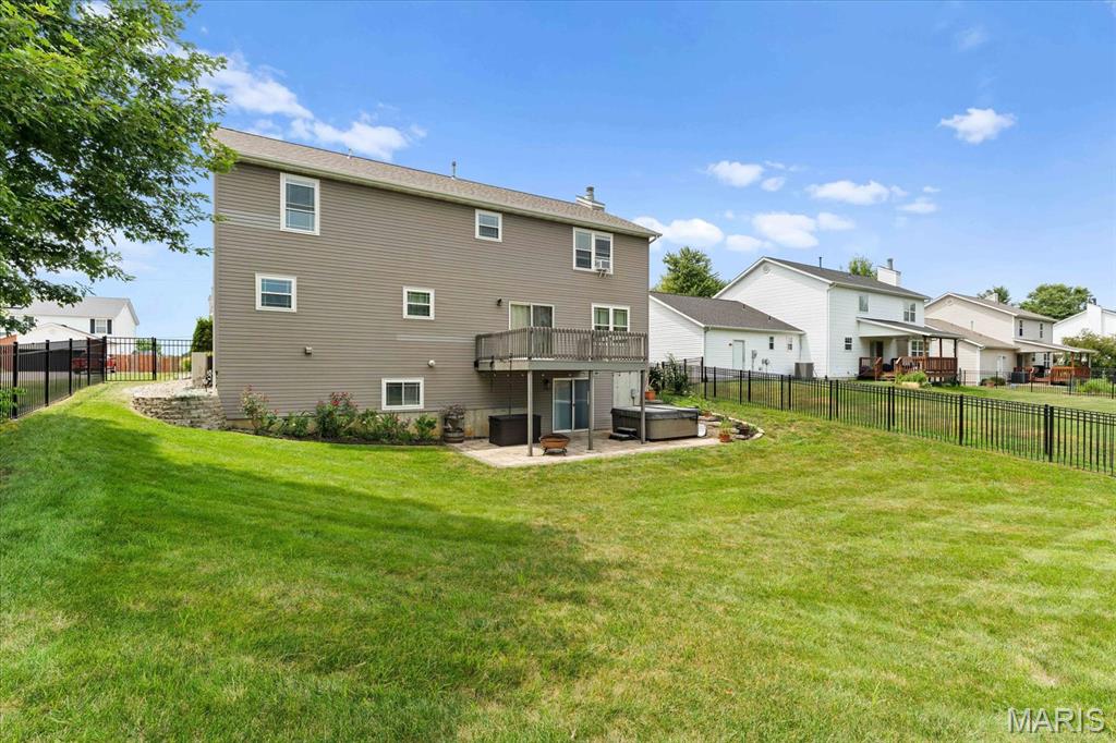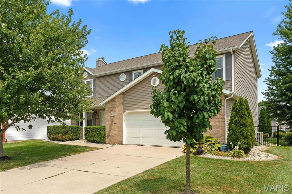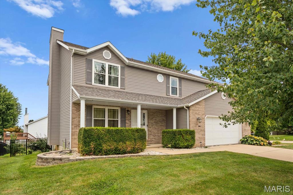818 Paige Lane is a beautiful, 4 bed/4 bath two-story home in Quail Meadows w/walk-out, finished basement! Classic covered front porch leads you into front foyer and large living room with luxury vinyl plank flooring, corner gas fireplace, and custom coat rack. This home offers both eat-in breakfast area and separate dining room. Open style kitchen area, plenty of cabinets, stainless steel applainces that all remain. Kitchen also features a double pantry, breakfast bar, and sliding glass door to the back deck overlooking fenced, large yard. Main level laundry room w/ utility sink & double door closet.1/2 Bath & coat closet off entrance to double car garage. Garage includes side 13′ workshop/storage bump-out for extra space! The upper level has Loft/Home Theater/Sitting Room! Master Suite w/walk-in closet and closet system, rennovated primary bathroom to include tiled stand up shower, soaker tub and double adult height vanities. All upper level rooms have BRAND NEW CARPET, and 3 additional good size bedrooms share spare full bathroom. Walk-Out Basement features a large family room,full bathroom & bonus room w/ egress window. Walk out to the newer paved patio and hot tub (STAYS!) oasis within the fenced yard. ROOF 2024, HVAC 2022 and WATER HEATER 2025! Dont miss your tour on this beauty in O’FALLON SCHOOLS, MINUTES from Scott AFB and close to all downtown O’Fallon has to offer!