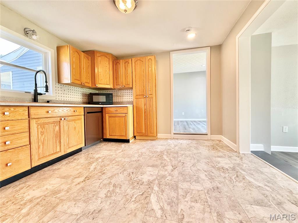 Welcome to this beautiful 3-bed 2 bath ranch style home nestled in a peaceful cul-de-sac with easy access to everything you need! This home is perfect for living and dining with a versatile step-down area off the kitchen ideal for a formal dining room, dedicated home office or a home school space. Beyond the main living areas, discover a newly created space from the converted garage featuring a new modern ¾ bathroom, convenient main floor laundry and ample storage for all your needs. Large full basement ready for your custom renovation. Step outside and enjoy an expansive level backyard, ideal for summer barbecues and outdoor entertaining — lots of possibilities. ALL APPLIANCES INCLUDED — refrigerator, washer and dryer, microwave, stove and garbage disposal. Improvements and updates: New oversized kitchen sink, 2 new sliding doors, Kitchen and main bath floor, New toilets, Electrical and plumbing, New sump pump, New sewer line, Side mount smart garage opener, 30 amp garage outlet for RV/hot tub, 20 ton gravel driveway extension, Fresh paint.