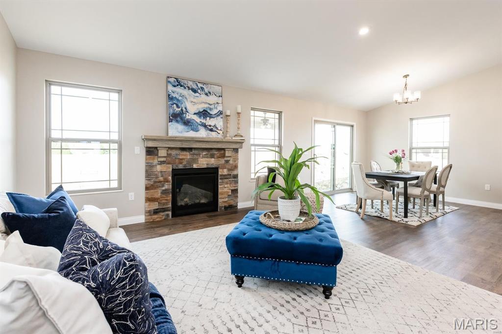 Experience refined living in this stunning new construction inspired by the Dakota floor plan. Boasting 1,900 square feet of beautifully designed space, this charming ranch offers 3 bedrooms, 2 bathrooms, and a full unfinished basement with future potential. The heart of the home is the open-concept kitchen, showcasing granite countertops, a large center island, pantry, and abundant cabinetry—perfect for everyday living and entertaining. The kitchen flows seamlessly into the dining area with a soaring cathedral ceiling and continues into the spacious living room, highlighted by a cozy fireplace. The luxurious master suite is a private retreat, featuring a spa-like bath with dual vanities, separate shower and tub, and a generous walk-in closet. The full unfinished basement is already plumbed for a future bath, offering limitless potential to expand. Enjoy the outdoor patio space for gatherings or quiet evenings under the stars.