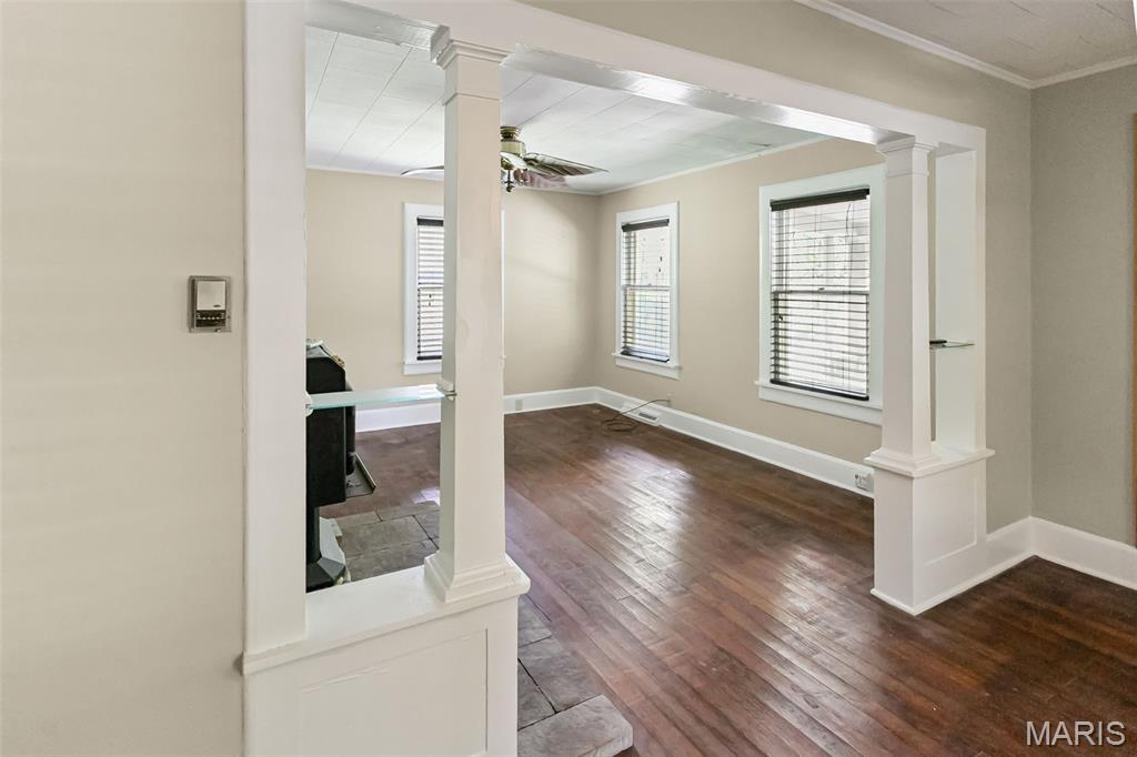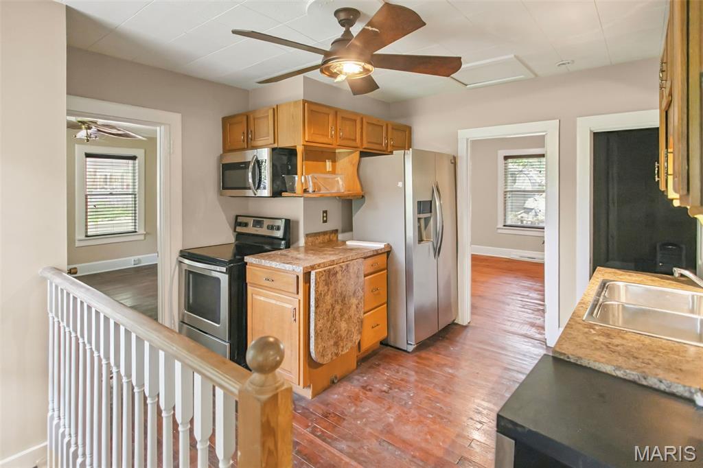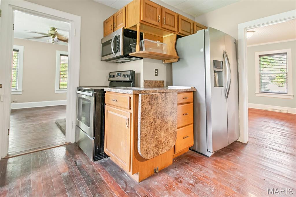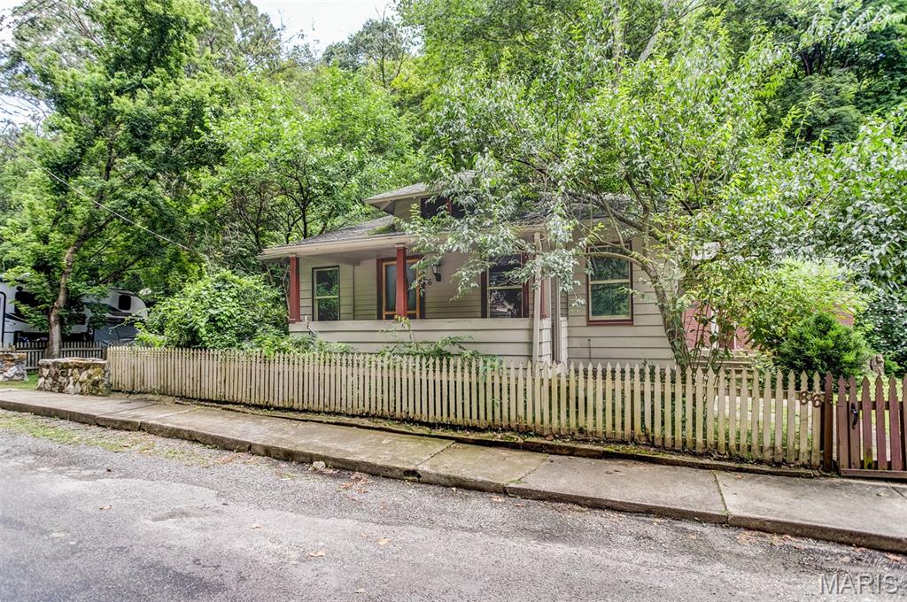 Just five minutes from Grafton, in the heart of historic Elsah, Illinois, this charming home offers a peaceful setting and so much potential. Backing up to beautiful woods, the property sits on a spacious lot that create a quiet, private feel. The home features two bedrooms and one and a half baths, some hardwood floors, fresh neutral paint inside and out, and a kitchen with some updates, including stainless steel appliances. There’s also an unfinished basement and a unique outbuilding perfect for a workshop or extra storage. With its cute curb appeal and picket fence, this home is full of character and waiting for someone to bring their vision to life. Priced affordably at $95,000, it’s a great opportunity to make it your own little retreat in a historic, picturesque town.