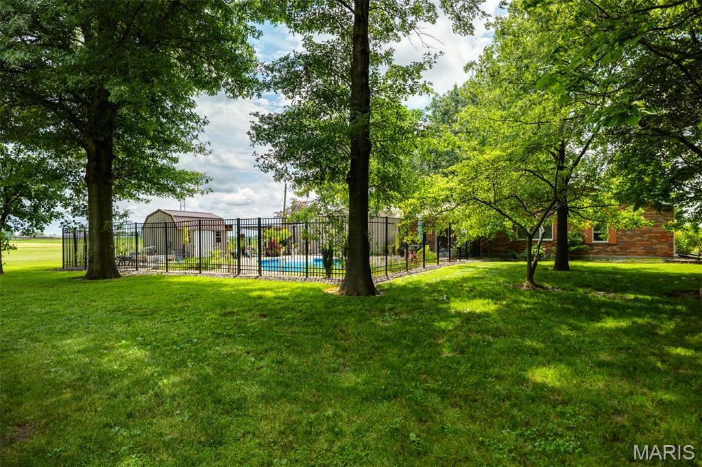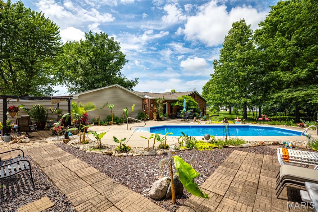 Welcome to your own slice of quiet on the edge of town! This 3 bed, 2 bath home sits on a beautifully landscaped 2.4-acre corner lot in Gillespie—within city limits but with a peaceful, country feel. Out back, enjoy your heated, ionized inground pool with black steel fencing, a pergola, pool house, and plenty of space to entertain. Inside, the open layout connects the kitchen, dining, and living areas, with great natural light and views. The kitchen offers ample cabinets, a center island, and appliances included. Cozy up by the gas fireplace or relax in the sunroom overlooking the backyard oasis. The main floor includes three bedrooms, a primary suite with walk-in shower, a second full bath, and a spacious laundry room with storage and walk-in closet. The family room has a ventless gas heater for extra comfort. Oversized 2-car garage, carport, and 3 utility sheds provide tons of storage. Encapsulated crawl with commercial-grade sump pump adds peace of mind. Washer/dryer and fridge stay. Plus, enjoy newly completed tennis/pickleball courts at Welfare Park, ballfields, playgrounds, soccer complex, and community gems like the Illinois Coal Museum, library, pharmacy, and florists—all right in town!