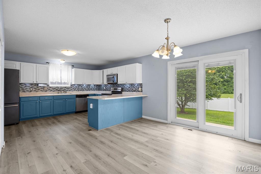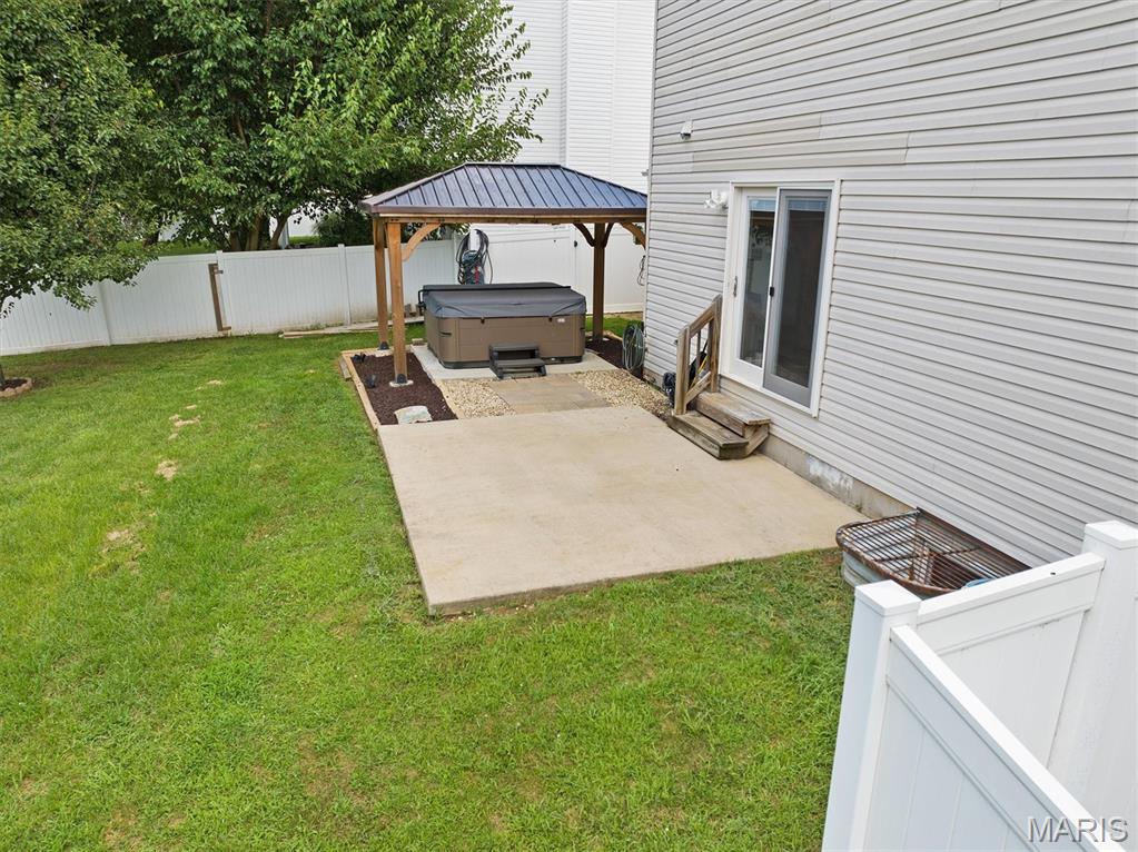 Amazing 2-Story in Prime O’Fallon Location with Tons of Updates! This move-in ready home is nestled in a sought-after O’Fallon neighborhood & features a new roof & brand new flooring throughout the main floor. Enjoy a welcoming covered front porch that adds great curb appeal. The spacious living room offers a cozy fireplace & plenty of room to relax. The updated eat-in kitchen boasts stylish two-tone cabinets, a breakfast bar for additional seating & a dining area plus all appliances are included! Convenient main-level laundry & half bath are located just off the kitchen. Upstairs, you’ll find two generously sized guest bedrooms, a full hall bath & a well-appointed primary suite. The carpets throughout have just been professionally cleaned, making the home truly move-in ready. The fully fenced backyard is designed for both fun and relaxation, featuring a generous patio, ample yard space for play or gardening and a 7-person hot tub beneath a gazebo perfect for unwinding after a long day! The finished lower level adds a large family/rec room and an egress window, another full bath & great storage space. This home checks all the boxes. Don’t miss your chance to own a beautifully updated home in one of O’Fallon most desirable areas!