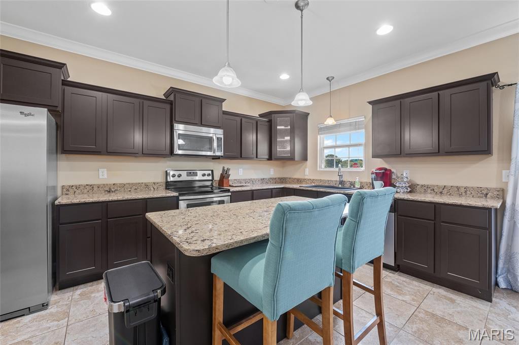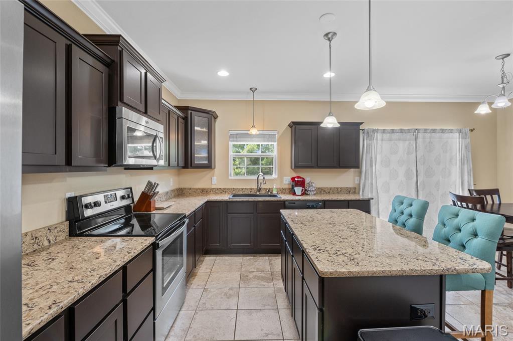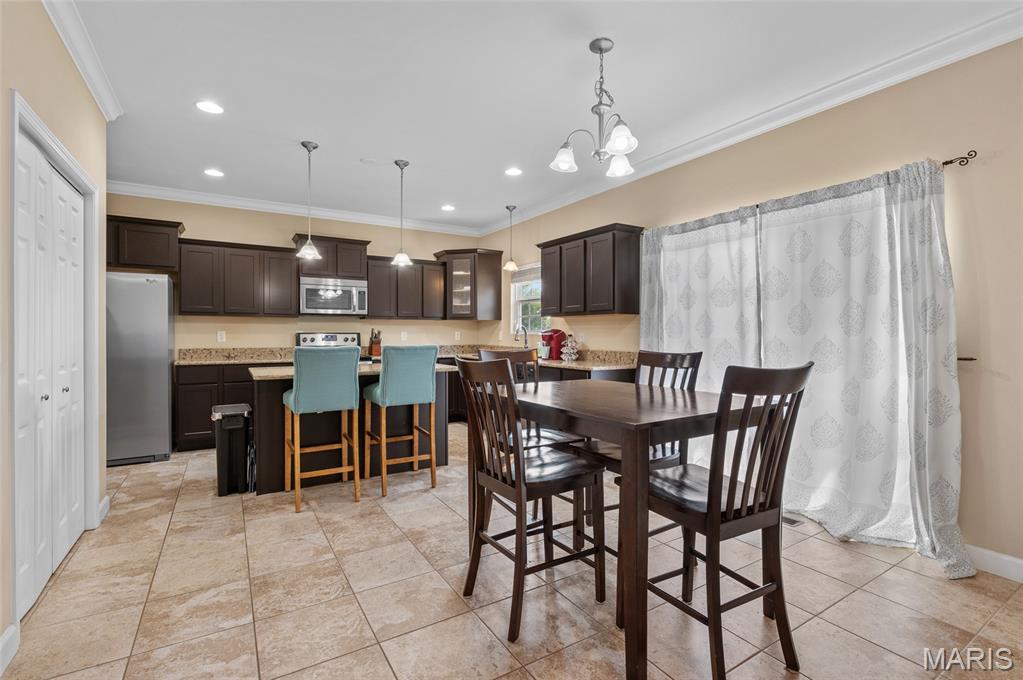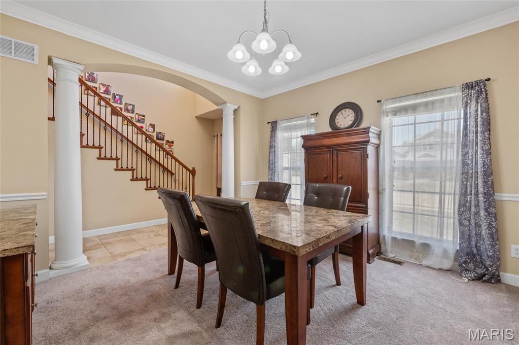 This beautifully designed, custom-built home sits on a corner lot surrounded by mature landscaping and timeless curb appeal. Step inside to a grand two-story foyer that opens to a formal dining room and a spacious kitchen featuring rich cabinetry, granite countertops, stainless steel appliances, a walk-in pantry, and an island with breakfast bar seating plus a casual dining area.