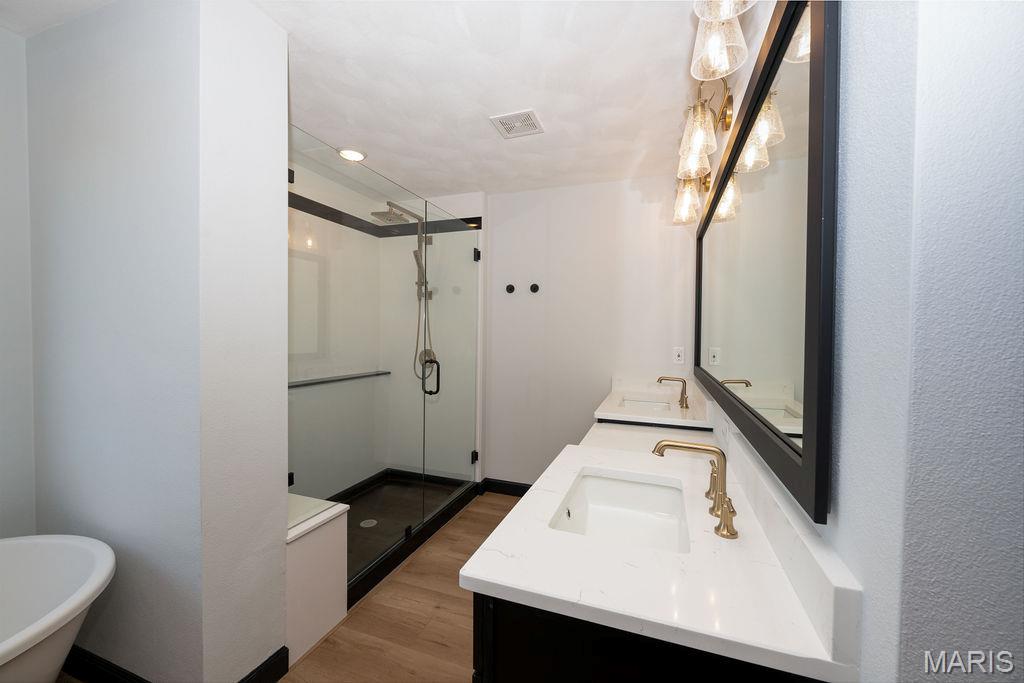 Newly completed beauty with upgrades galore. Custom aspects everywhere – doors, trim, windows & much more. Luxury Vinyl Plank flooring throughout. (yes, stairs & basement!) The custom kitchen is ideal for gatherings & entertaining. It features upgraded cabinets, appliances, granite island and countertops plus a custom walk in pantry with custom shelving, baskets & butcher block top. The dining area walks out to a 14×14 covered porch to expand the entertaining area. Split bedroom layout with a stunning owner suite that boasts natural light coffered ceiling. The private bath has a custom marble shower, a free standing tub, quartz vanity tops & upgraded fixtures (as do all baths in the home) Two nice sized bedrooms, & laundry room complete the main level. The phenomenal lower level (wrought iron spindled stairs lead you there) has a huge family room, 4th bedroom & 3rd full bath. Ample storage space & room for future expansion. Sensational!